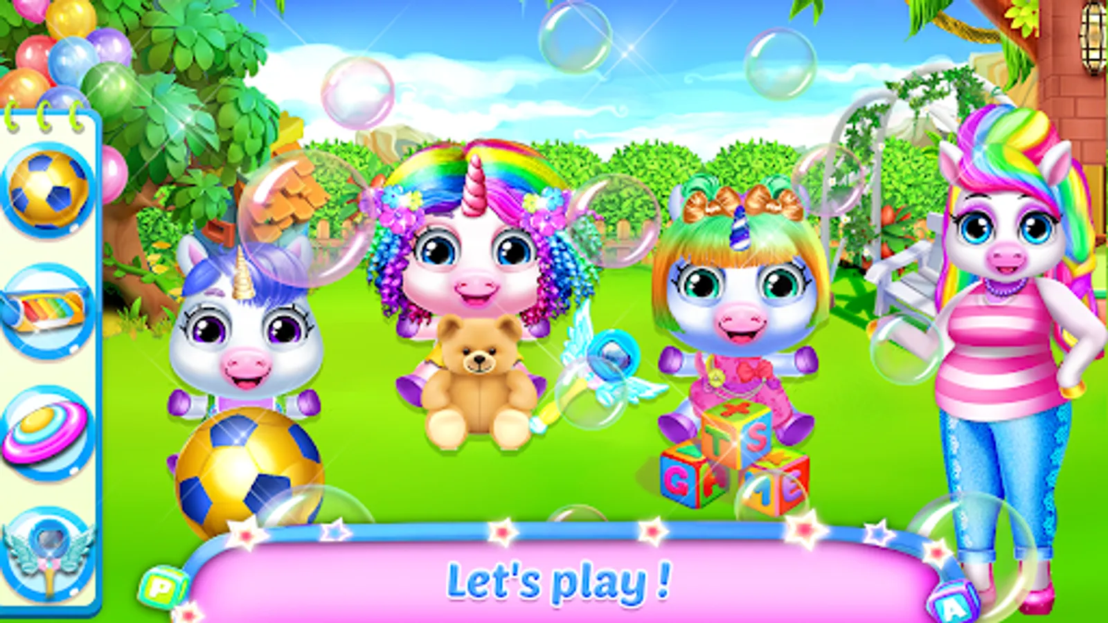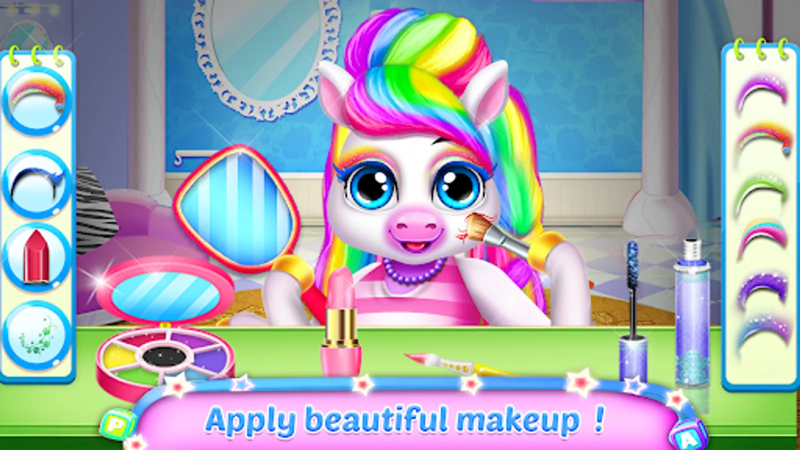 Mommy in daycare, animals dress up and daily caring just like motherhood facilities in nursery for infants. Babyish game is funny for kids of ages 3 and above. Adopt a virtual unicorn and take good care of your pet. Feed your little pet with delicious cakes from bakery shop. On this Christmas , amaze them with collection of good night sleep kids nursery rhymes in unicorns house. Arrange fun activities in home play garden and spent some wonderful time with your lovely magical pets. Unicorn girls pretty braids hairstyling ideas to looks stylish like princess free hair cuttery in fashion salon game.