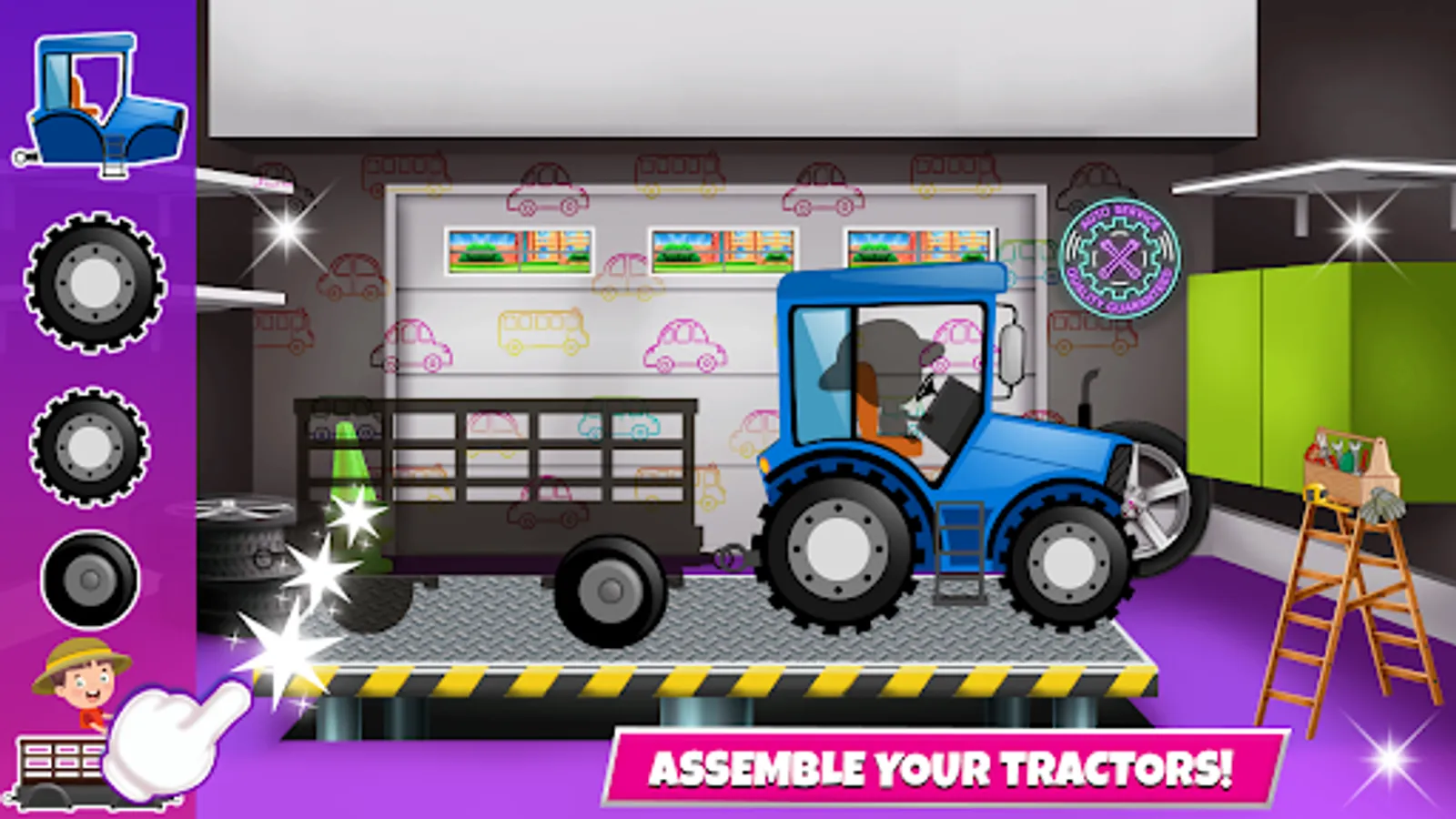 Kids Farm Tractor on Hills Racing games for preschool toddlers and boys of ages 3,4,5,6,7 and 8 years ages. Toddlers Farm Trucks hills driving car games for Kids will let you have real lifestyle farming simulation and build a farm trucks. Join all parts of tractor trucks and then after washing you have to re fuel the builder trucks tanks. It is the perfect racing game for pre schoolers and educational toddler driving game for 5 year old boys. Open your own kids cars washing salon, where many builder trucks are coming after fields works and racing on hills. You can be the famous truck mechanic and teach truck auto service workshop vehicles for kids about cars first aid problems. Enjoy educational play with preschool themed tractors uses in utility and industrial like row crop, orchards d tractor, garden, power tiller with horsepower and crawler tractors with loader simulator. Transport vehicle learning games for boys and cars racing games for girls. It is a new auto and vehicle apps 2022 for kids who love cars and monster trucks and tractors. Boys in class room usually challenge to have a crazy tractor race on different tricky tracks like off-road or hills.