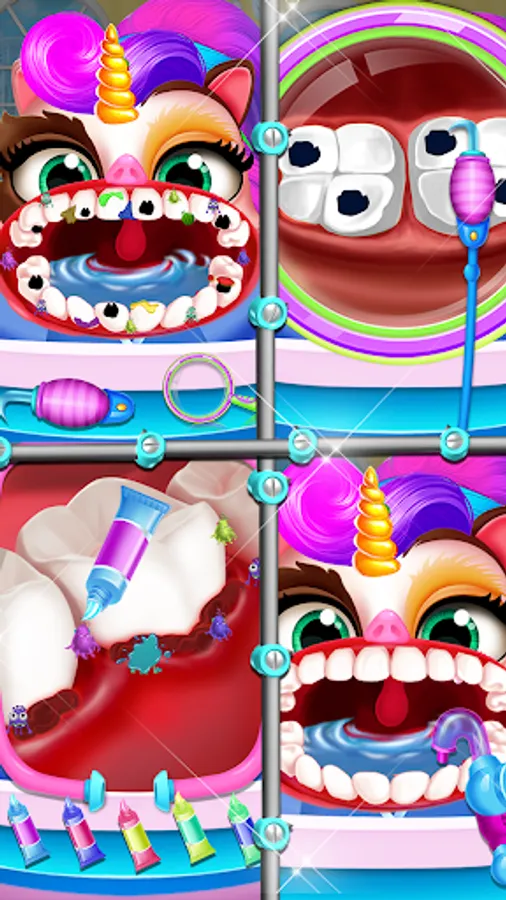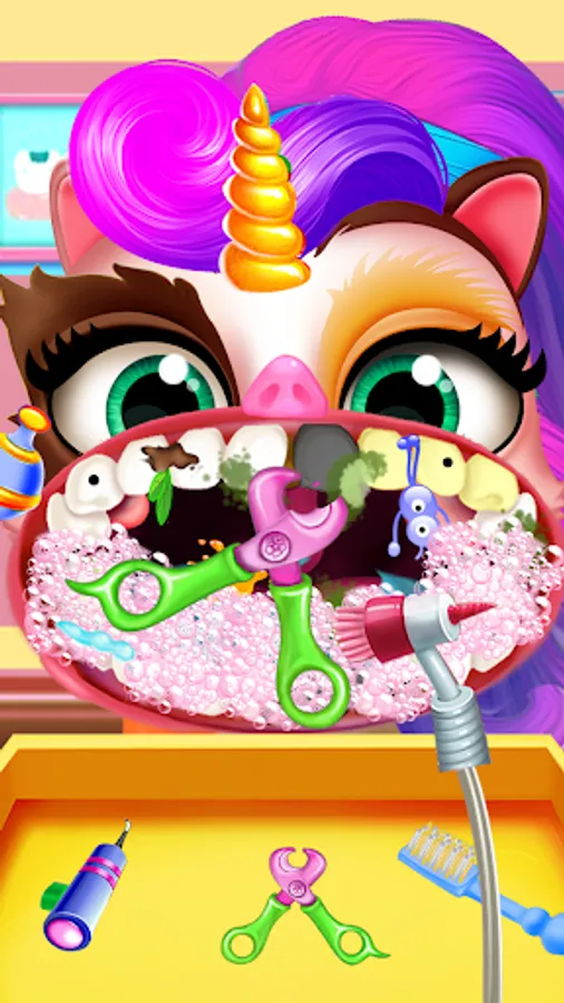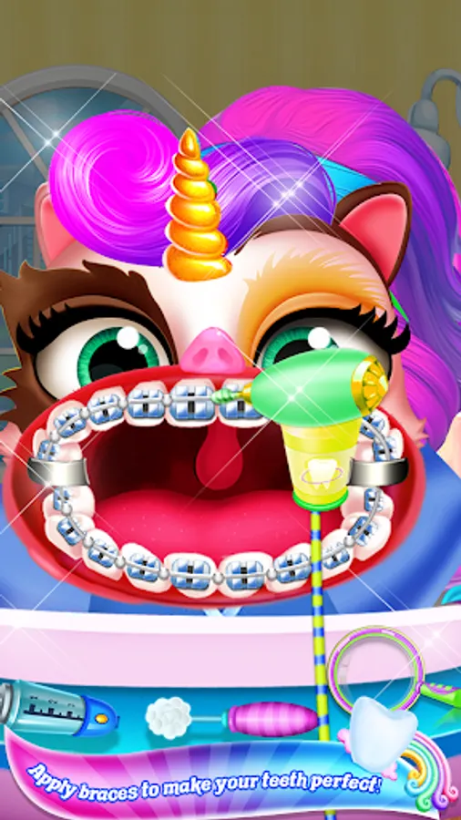 Welcome to 🐈Unicorn Kitty Doctor Hospital Teeth cavity Braces dentist games for girls and boys. Choose your favorite kitty patient for brush teeths fixing and treatment. Take good care of your teeth and be professional real dentist in your clinic. Do some crazy teeth surgery of animals. Diagnose all pets vet problems and let your unicorns spend a healthy life and looks their mouth cute with colourful glittery braces.🏥