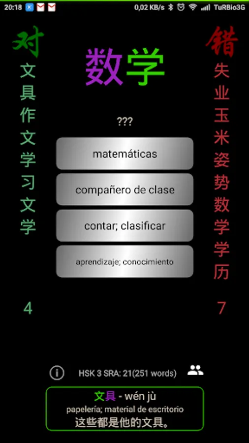 This app helps you practice your Chinese reading for HSK levels 1 to 5 with a fun quiz game. You can practice in english and spanish (German available for HSK1 and HSK2)