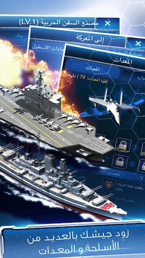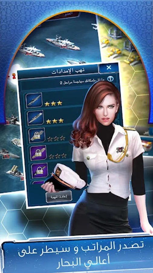 Build your base and leading marine fleet towards victory in the war strategy game, set sail around the world to pool resources and compete with thousands of Arab players to build your empire marine, alliance with your friends, and challenge the other alliances to prove your excellence Tactical and Military.