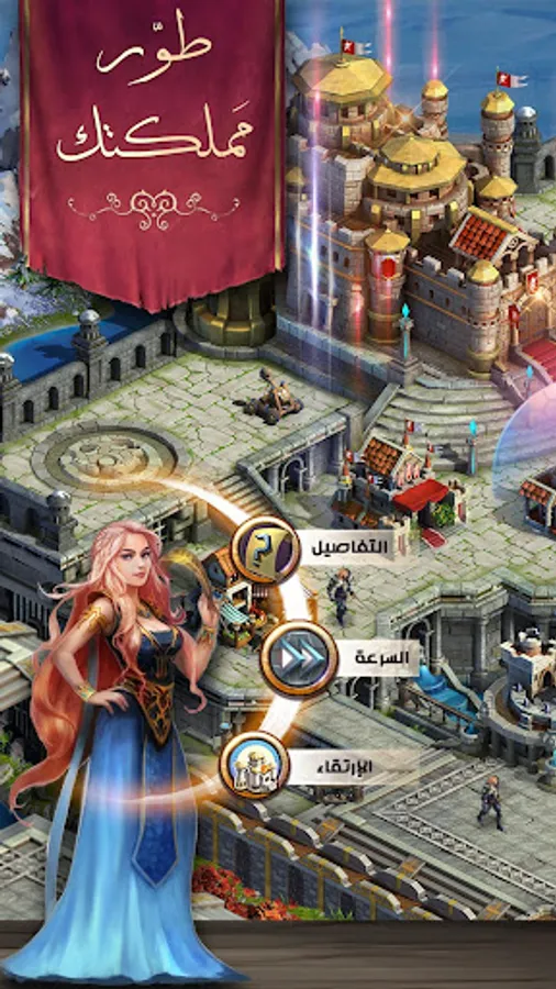 * Your castle own: Build and develop your castle own to govern them, son of high Jdrank strong and Thchinatk to repel the enemy, the wounded treated from thy bands at the military hospital, strong your economy and the exchange of resources with your allies in the trade market, son your embassy to host the cross powers of your allies, mourning developed to provide royal knight powerful equipment and many others