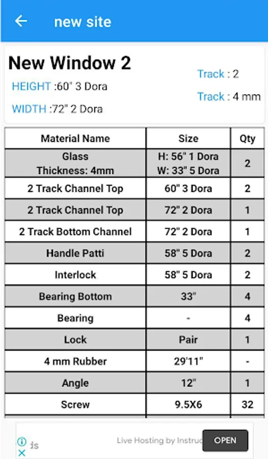 Just enter basic info of window like height and width and you will get list of materials with size and quantity.
