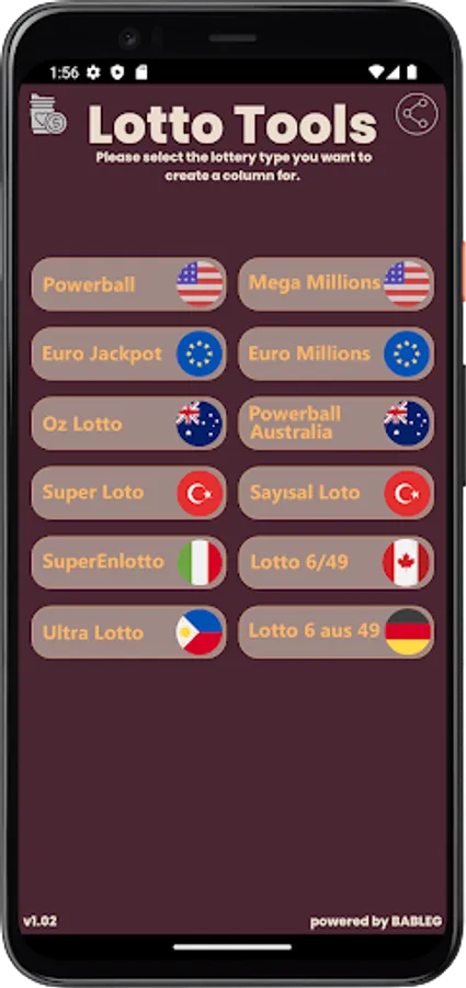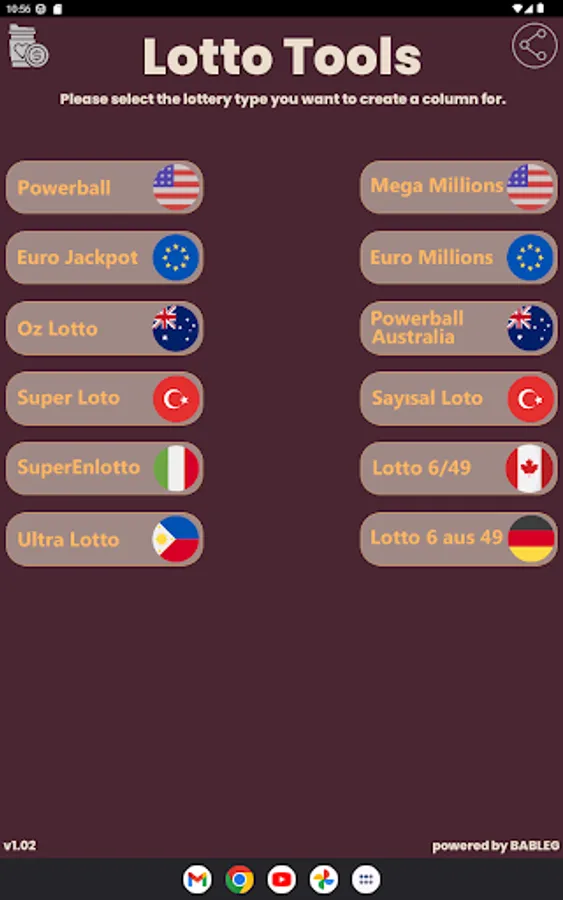 The Lotto Tools tool allows you to make useful calculations for popular lotto types around the world such as Powerball, Mega Millions, Euromillions, EuroJackpot, SuperEnalotto, Lotto 6/49, Oz Lotto, Powerball Australia, Ultra Lotto, Lotto 6 aus 49.