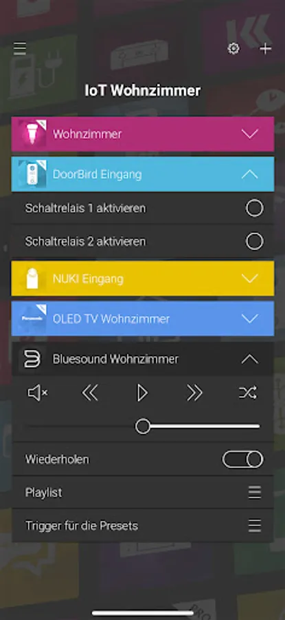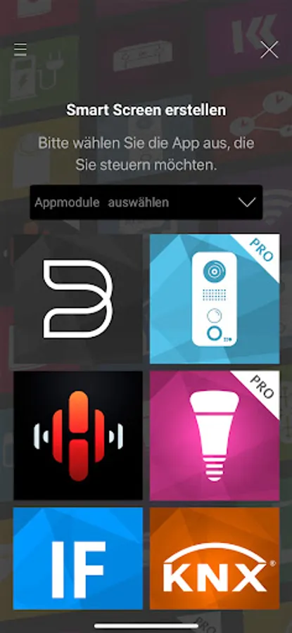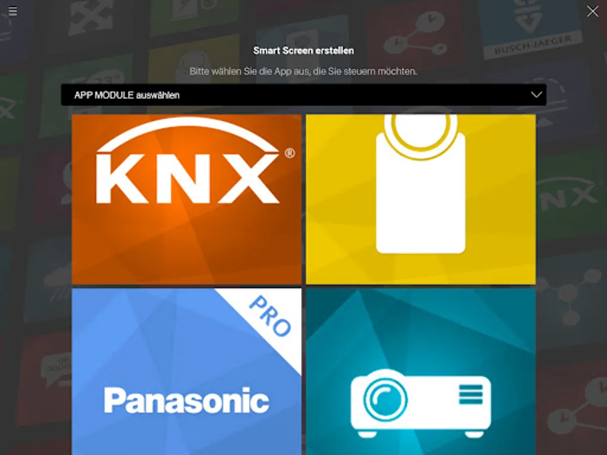 Whether Philips® hue, Panasonic®, Sonos, Nuki or DoorBird: Smart Screens-ready Smart Home Apps installed on the APP MODULE can now be controlled directly with your smartphone. Download »Smart Screens« and connect your smartphone to the APP MODULE. Create your first smart screen in just a few minutes and combine functions of different products - easily, individually. This way you control different IoT and KNX components in one interface.