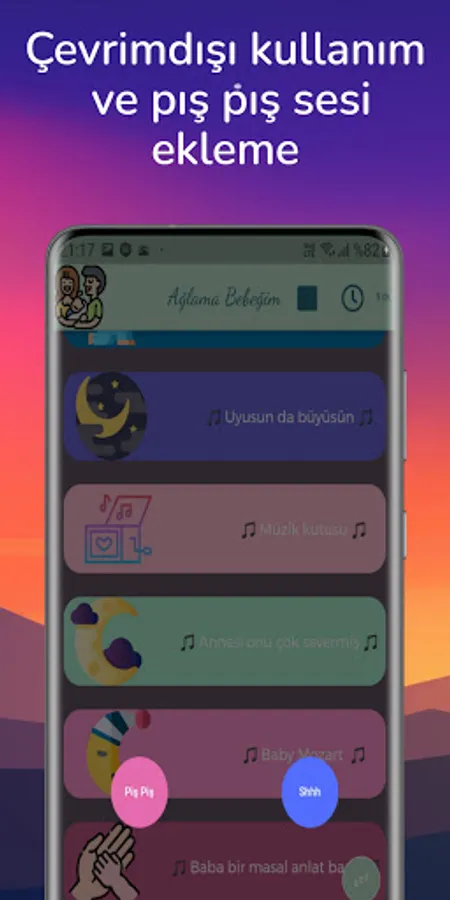 Sleep Baby app creates a comfortable sleep environment that calms colic babies and prevents them from crying. Your baby will have a sound sleep with these continuous sounds.