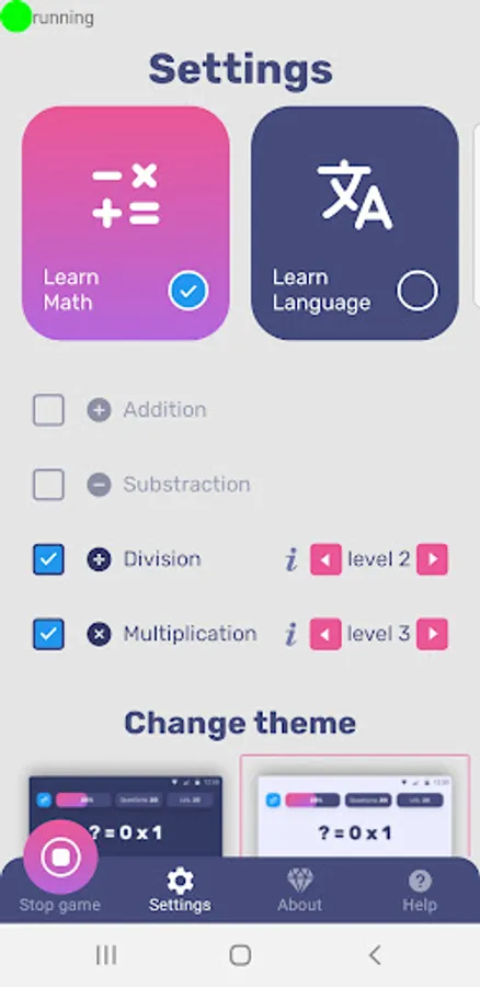 Math and Language Control is not a regular learning app. It is a groundbreaking and approved approach that will teach your child math and vocabulary while grasping his attention. Math and Language Control will take over your child’s phone every 20 minutes. Your child will need to answer 6 questions in order to be able to use his phone again (this includes playing games, WhatsApp, and even watching movies) for the next 20 minutes.