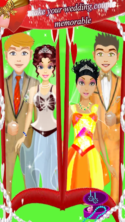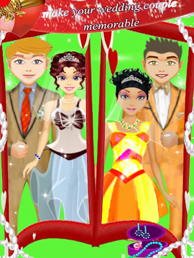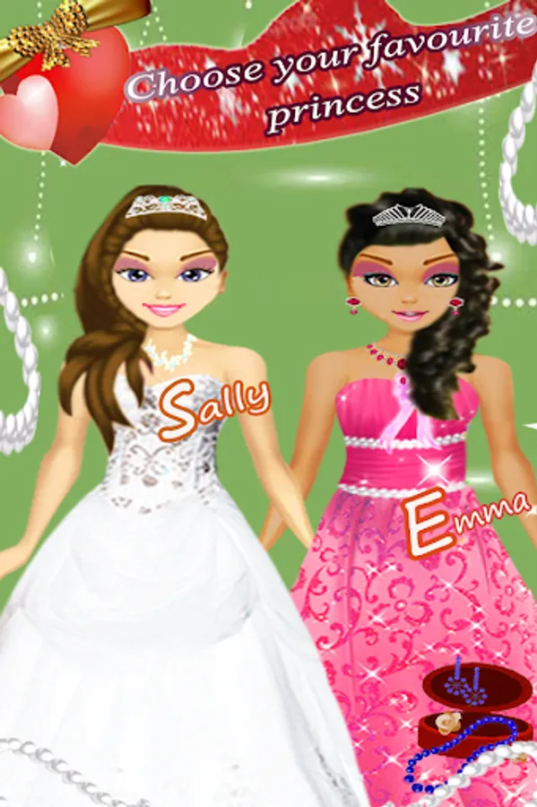 Prince(jack,Charles) and princess(sally,emma) are going to marriage. And they need your help to select their wedding dresses to dressup on their marriage ceremony. They want to wear latest fashion style clothes with royal and fairy touch. You have a penalty of new dresses in the wedding salon. You need to pick the right combination to dress them.