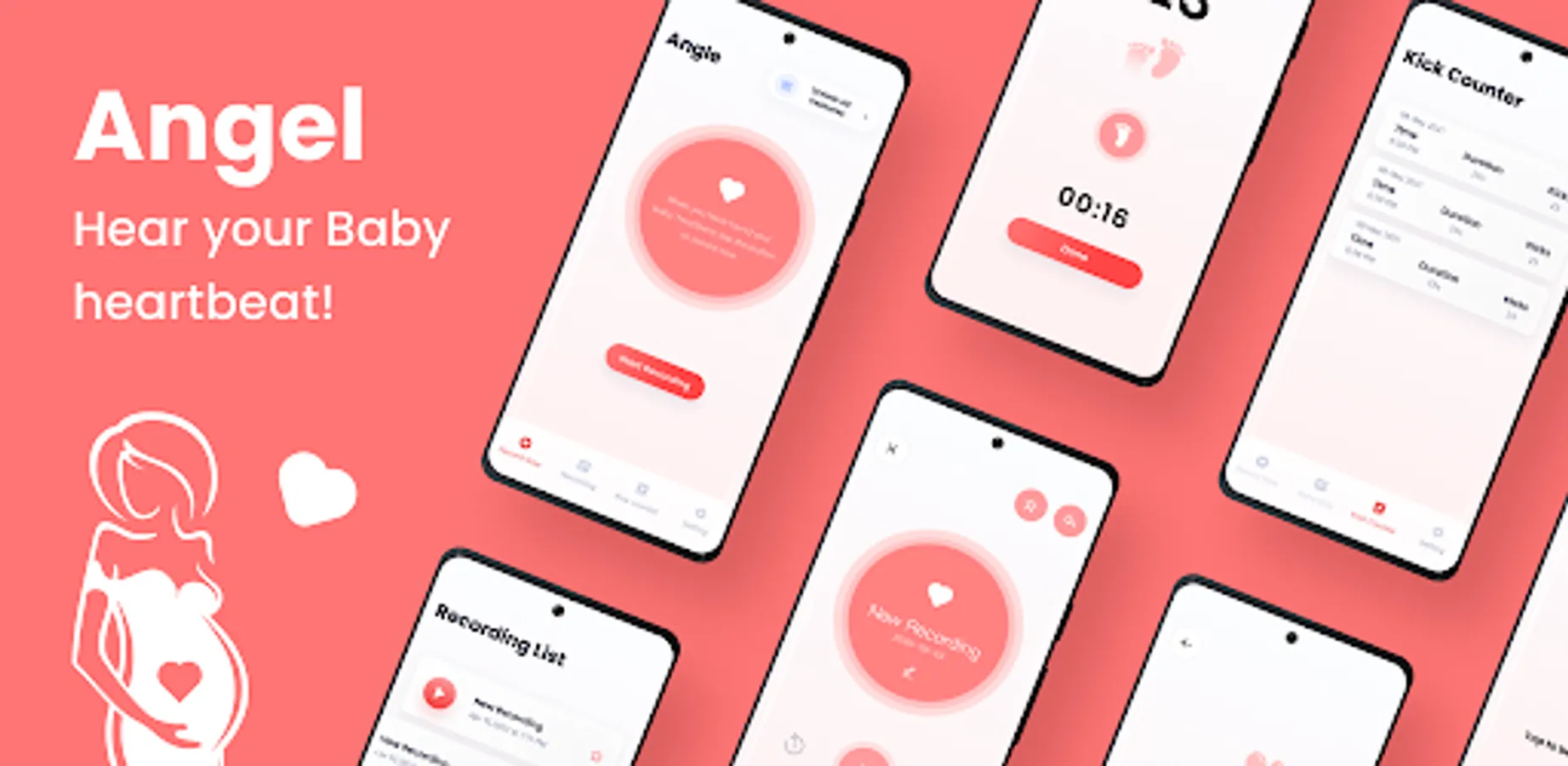- Angel app is easy to use. Angel doesn't use ultrasound and no need for any kind of Gels. Its a cute and safe option to record your baby heart beat.