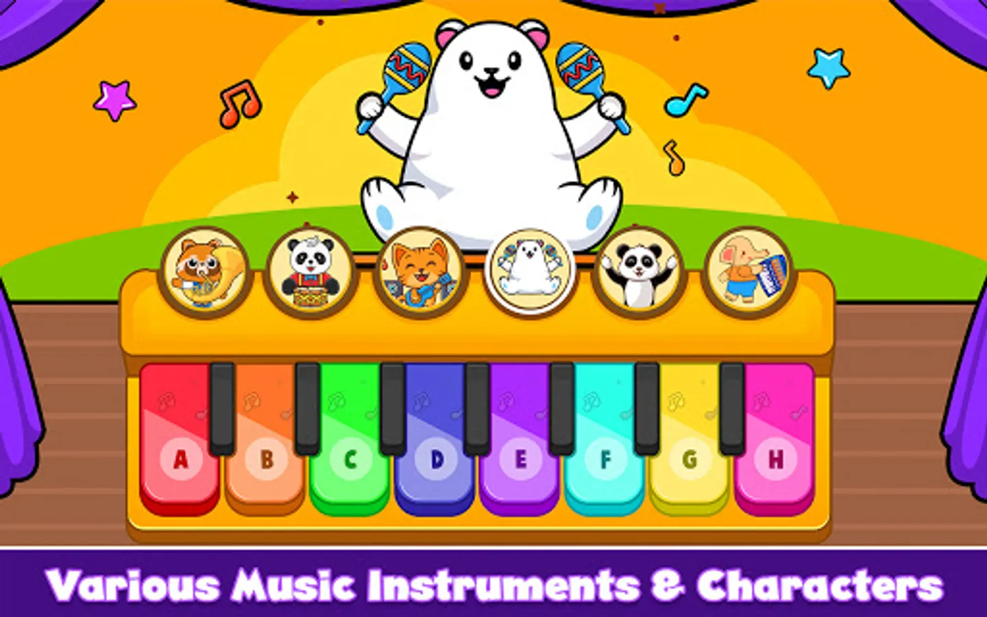 First of all, download and install this app from the Google Play Store, then open it. Now you can see the main screen of this game and play piano.this baby piano games free is a musical piano app that builds their musical talents and songs together for a whole family! Children learn to play musical instruments and to discover numerous sounds and musical games. For young children, let your kid grow their musical passion in the educational music game. This children's piano app has lovely creatures, letters , numbers, vehicles, goblins, aliens and assorted musical sounds. Children practise by playing piano.