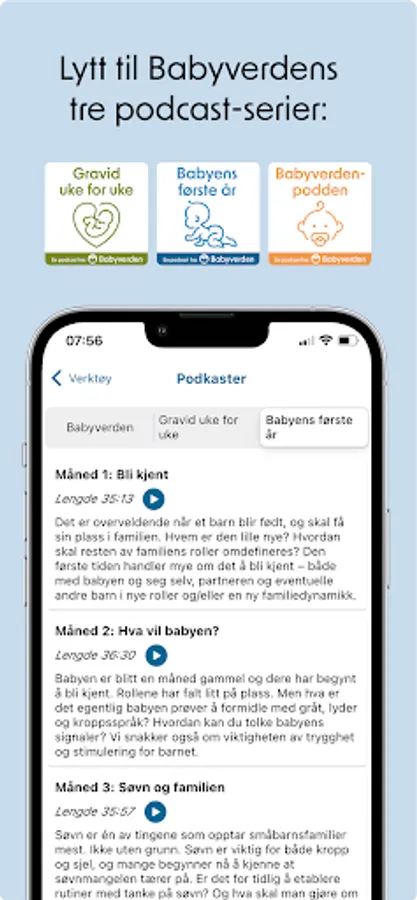The app is part of the Babyverden universe, which also consists of Babyverden.no, forum, online store, three podcast series and the Infant's book.