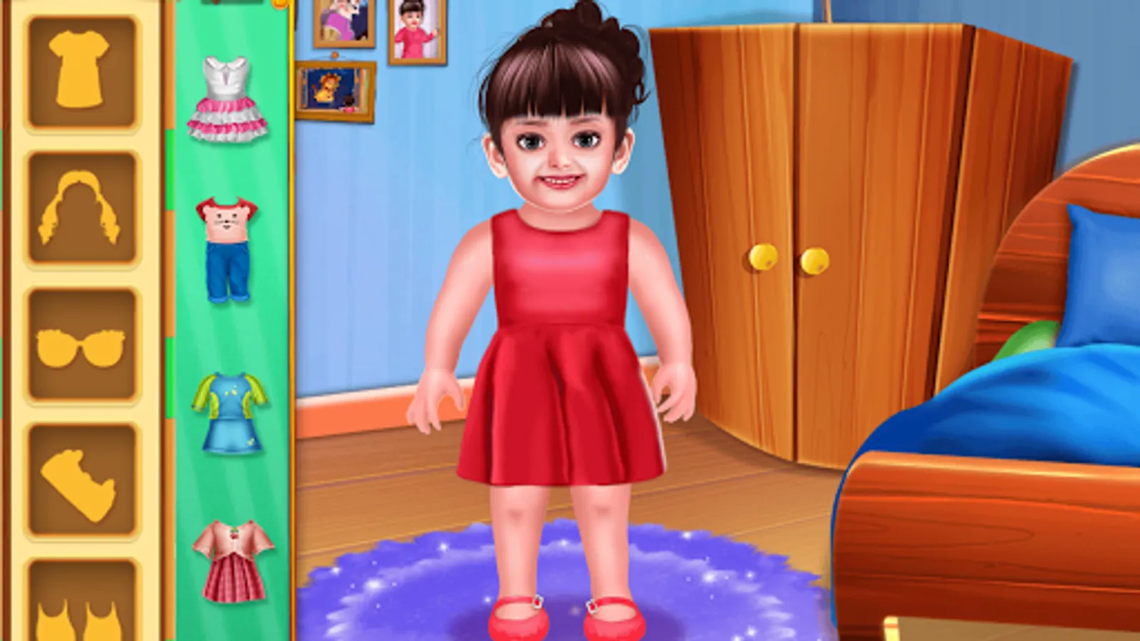 Spend a day with baby Aadhya and help her to perform all the activities she does during the whole day. Start the day by ringing the alarm clock and then help her to perform various early morning activities like brushing teeth, giving a bath, dressing up and much more. While going to school, don't forget to cross the road only when there's a green light. At school help baby Aadhya to learn various colors, alphabet, numbers and names of different animals. There's also a mathematical view where you need to help Aadhya to perform various mathematical activities. After coming back Aadhya wants to go to the park, but the park is very dirty so she needs your help to clean it up and then play various games at the park. After the long day Aadhya is tired, so help her to fall asleep.