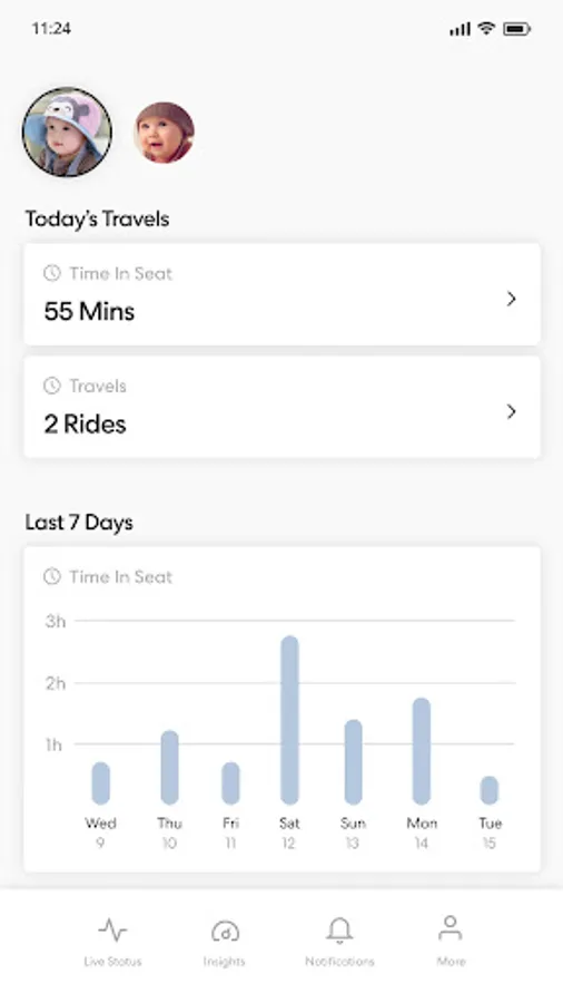 - Provides a wide range of real-time alerts such as buckle status, forgotten baby, and live location in the event of an accident