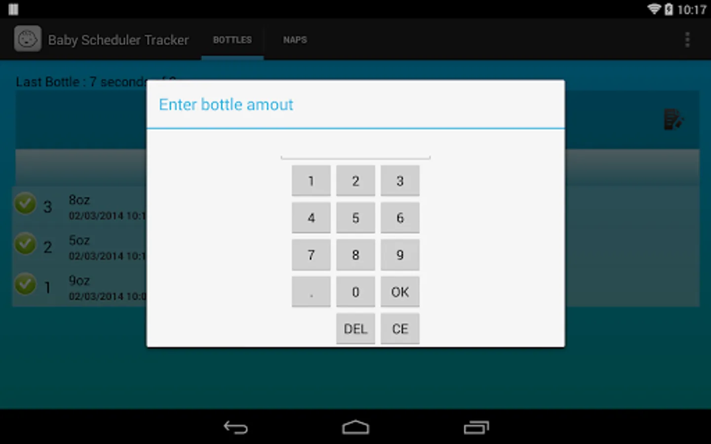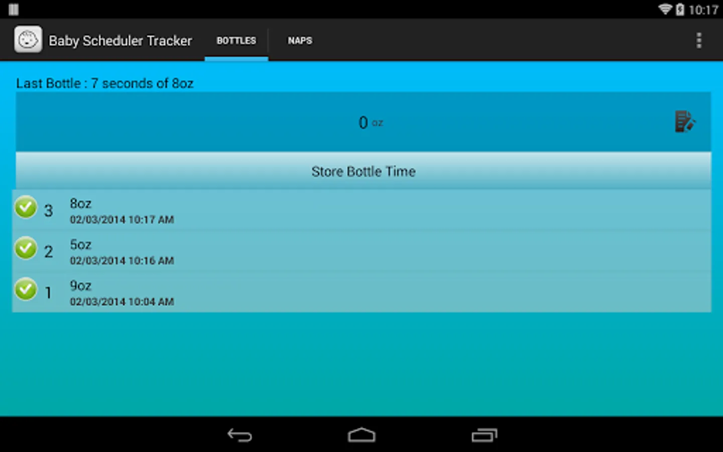 Keep track of your baby's bottles and naps with this easy and simple to use app, no complicated or fancy user interface.