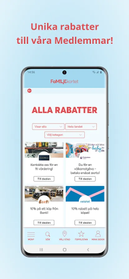 With the Family Card's APP, you get access to thousands of awesome discounts and offers that have been developed for Sweden's families with children! You can easily navigate to your dream deal with a few clicks. Today we have almost 200,000 members who take advantage of discounts from more than 2,000 different companies around Sweden. In the APP, you can search for offers for both local and nationwide companies. Of course you will also find discount codes to shop with online!