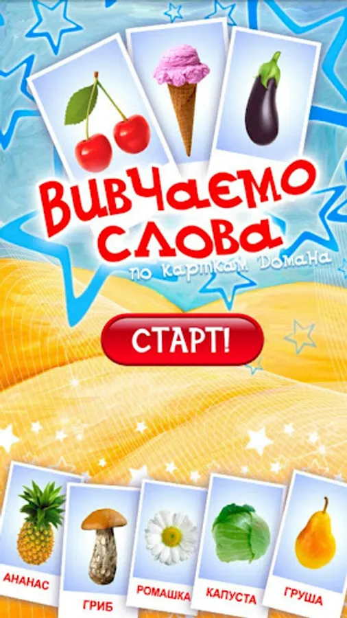 And also give a good mood. The kid will be delighted with the bright and cheerful view pictures. Absolutely free application. For children from 6ti months to 6 years. Educational Game - studying the cards - objects, things, animals, fruits.