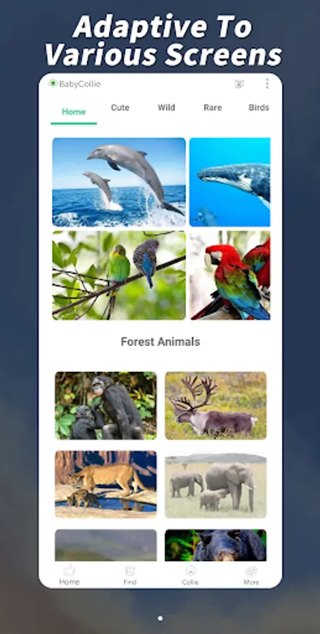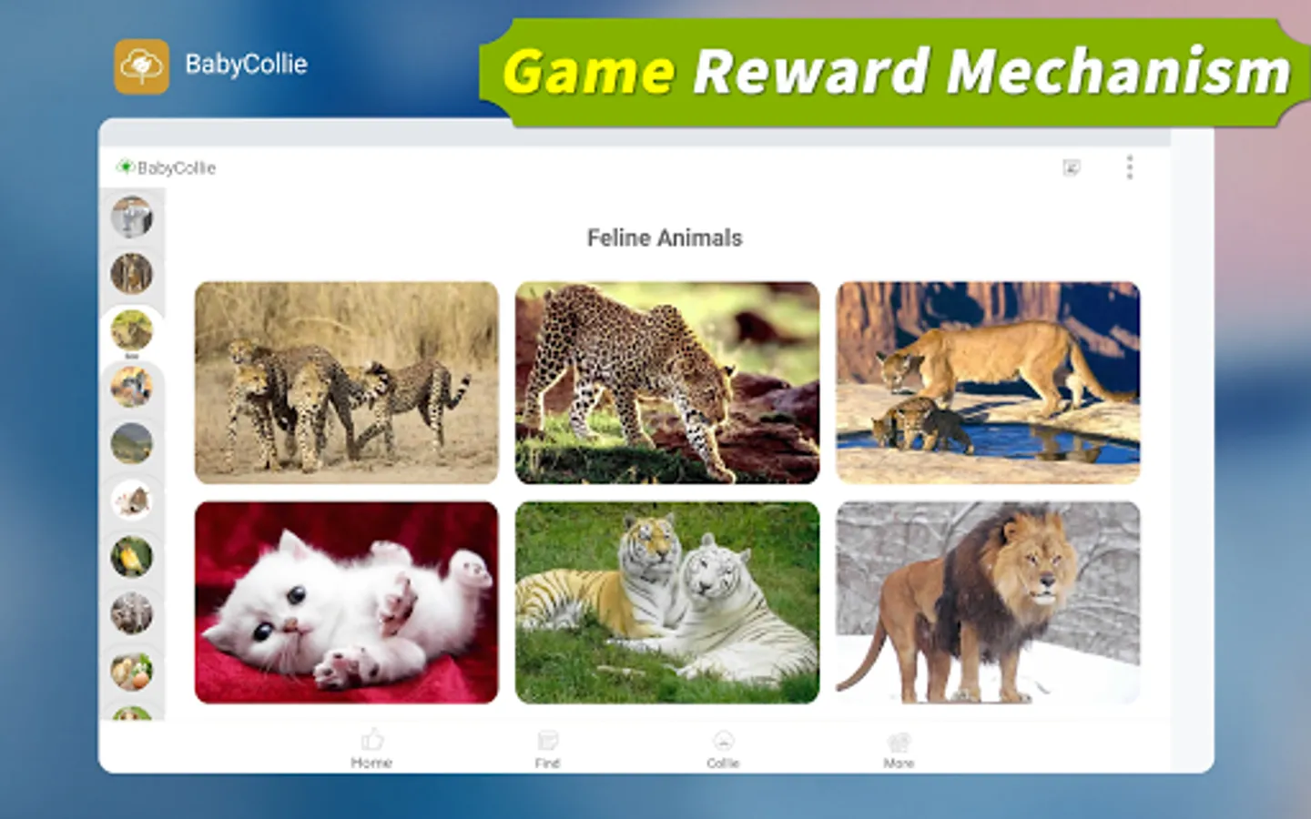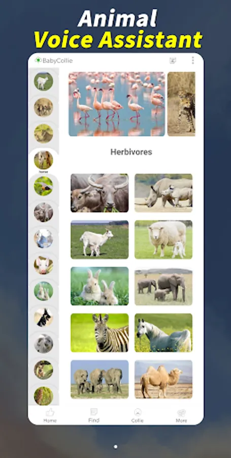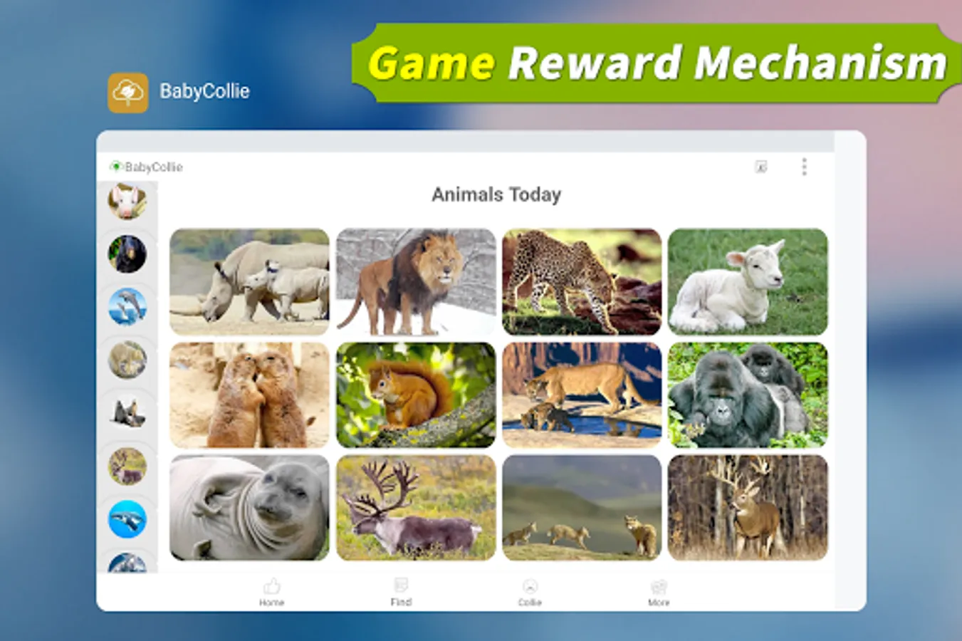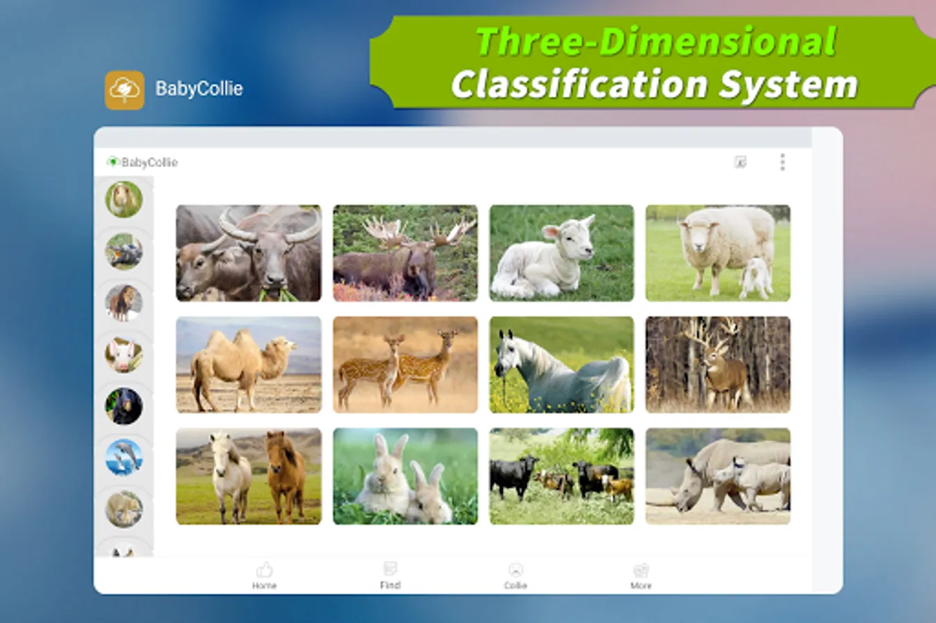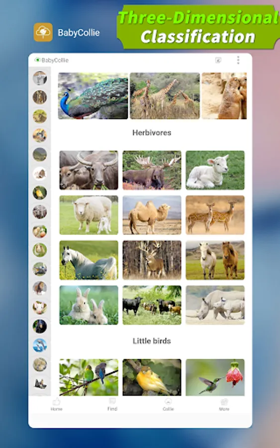 Well, now we open the BabyCollie Mini APP, you can quickly browse the five special animal areas: