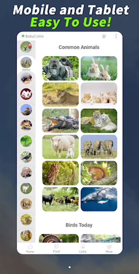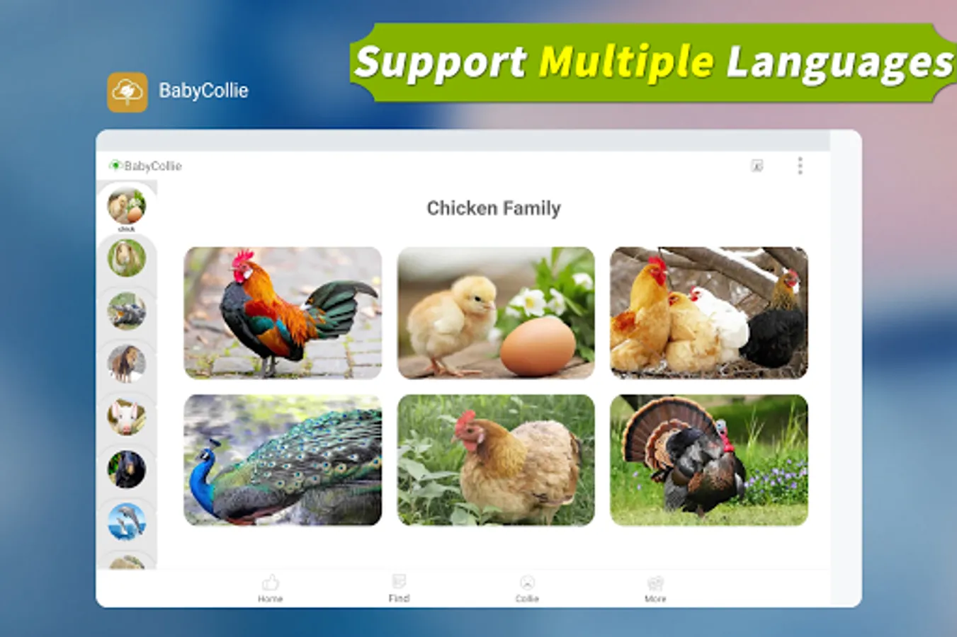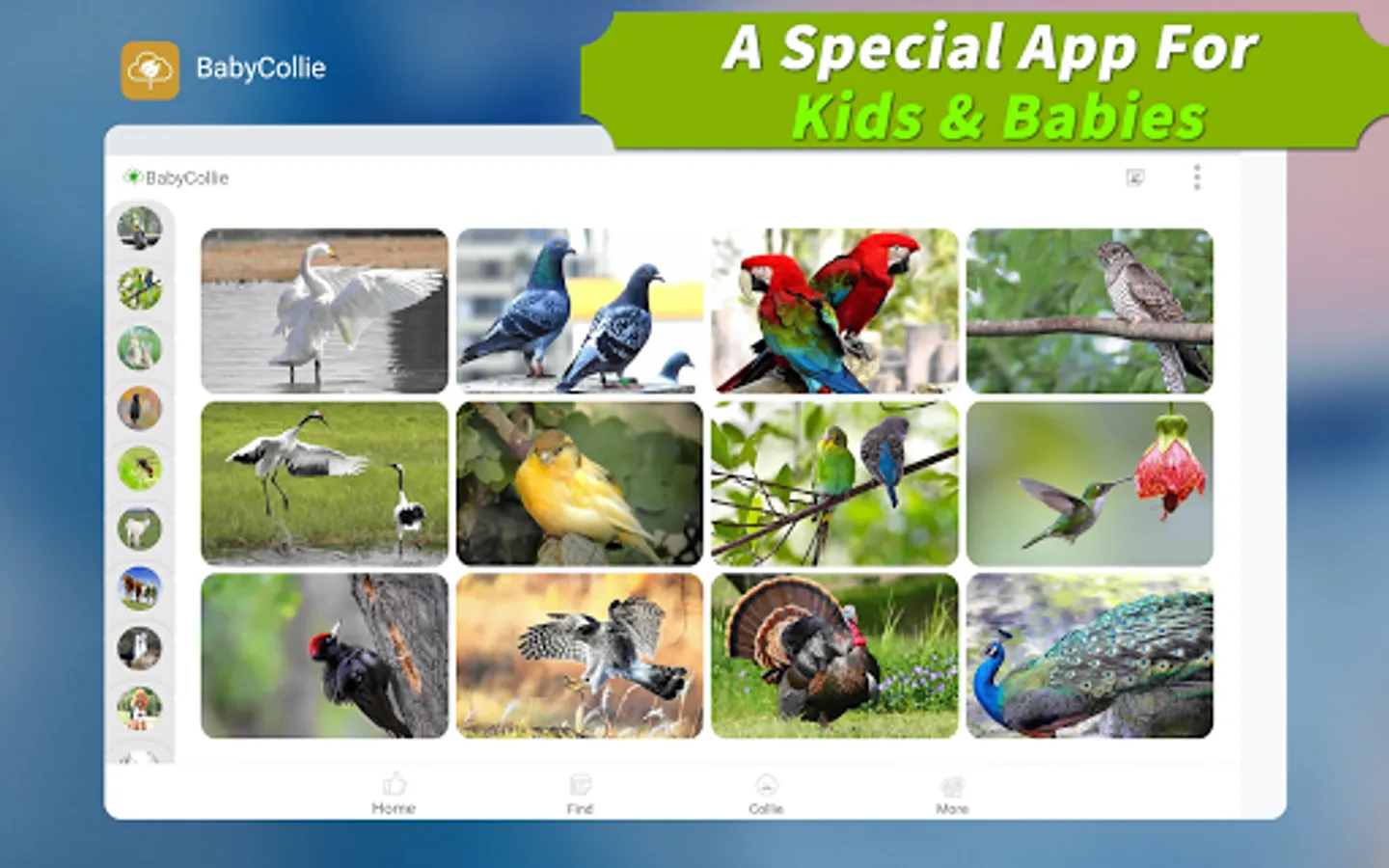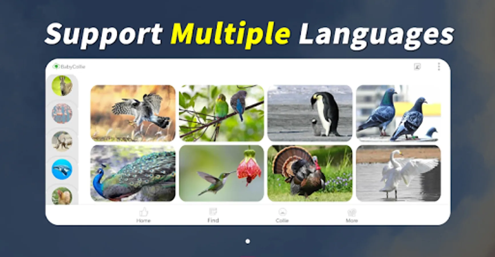 Every life picture of animals and birds in the BabyCollie APP has been carefully selected so that you can identify and remember what animal or bird it is at a glance!