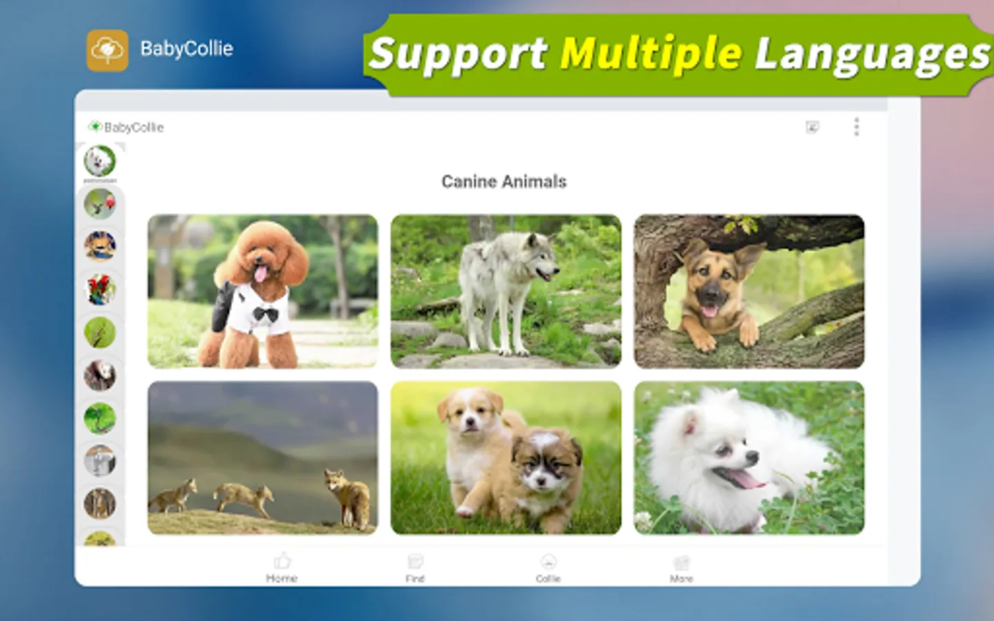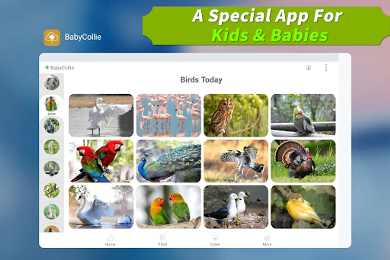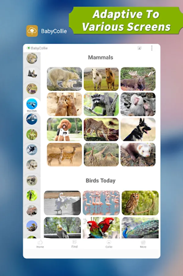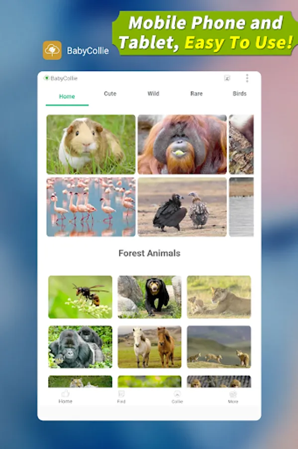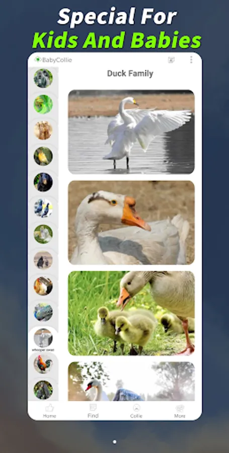 Every life picture of animals and birds in the BabyCollie APP has been carefully selected so that you can identify and remember what animal or bird it is at a glance!
