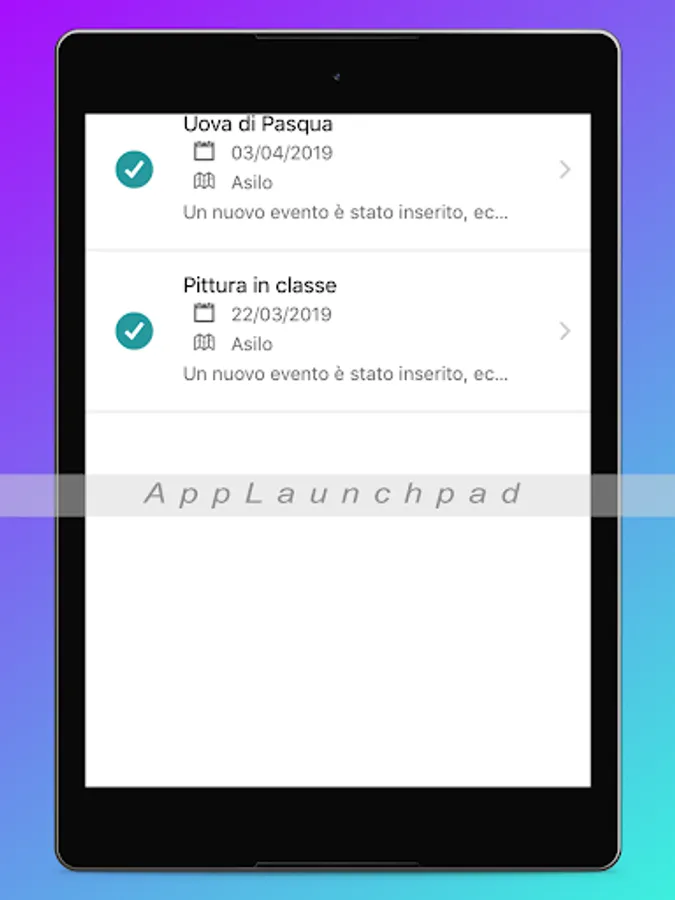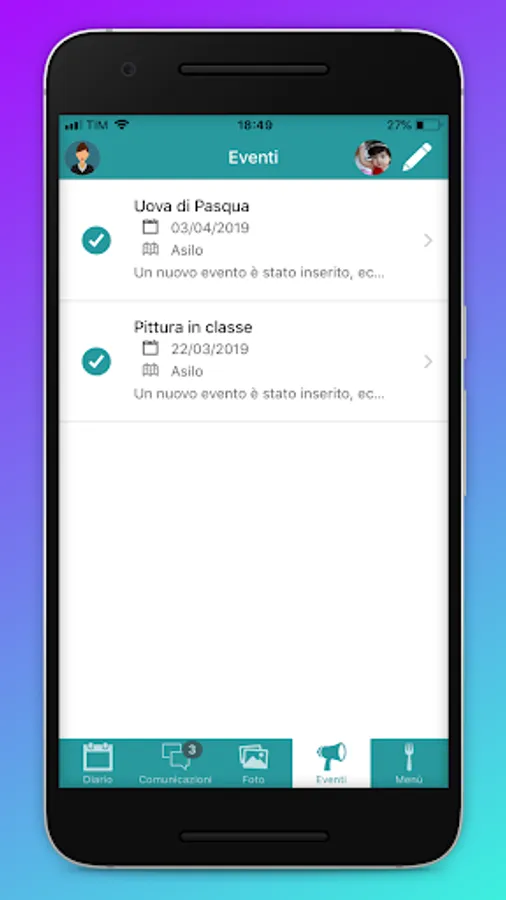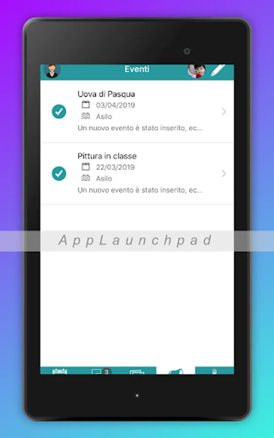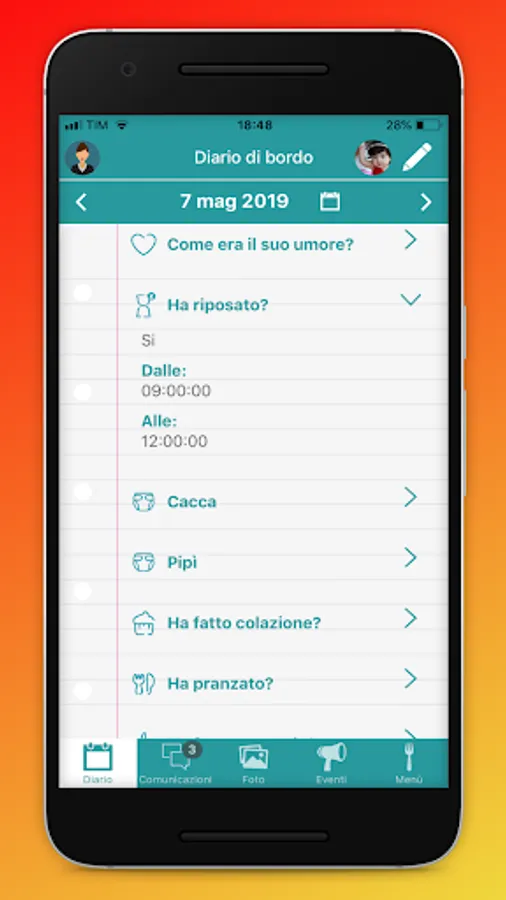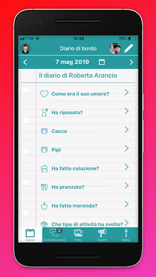 It provides, for each child, the easy compilation of a "Log Book" which, updated with the inclusion of the events that characterize the day of the individual children, manages to keep parents constantly updated. It will be possible to manage individual or group activities in a few simple steps, send photos and individual or collective communications to parents.