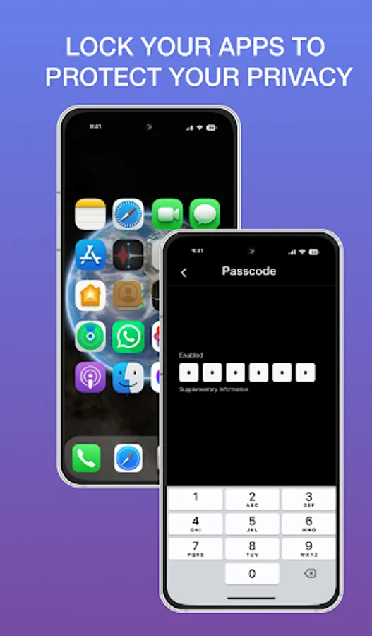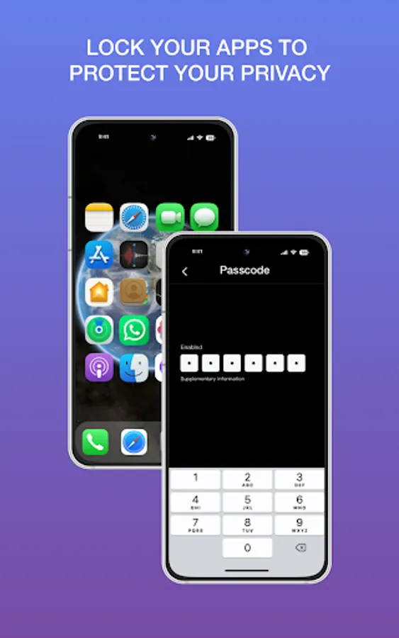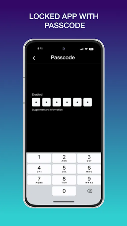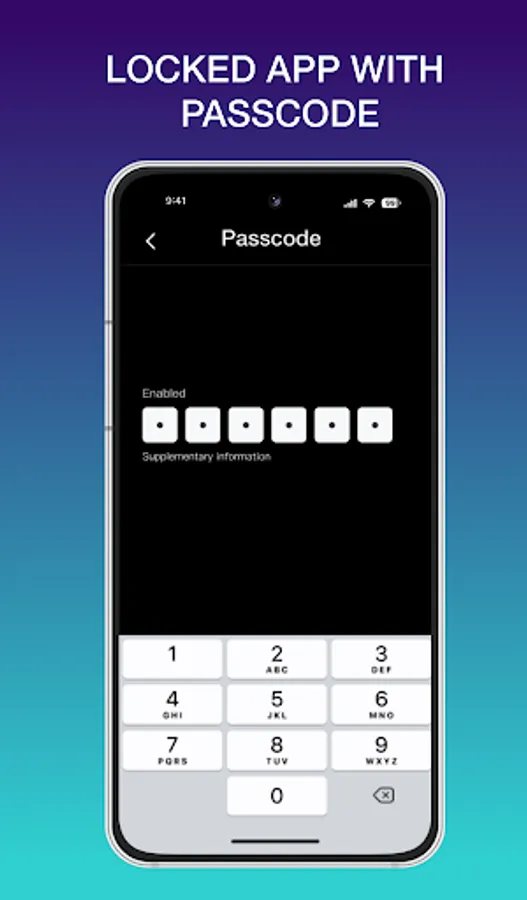 • Passcode lock type, you can have type 4 digit or 6 digit with numbers.