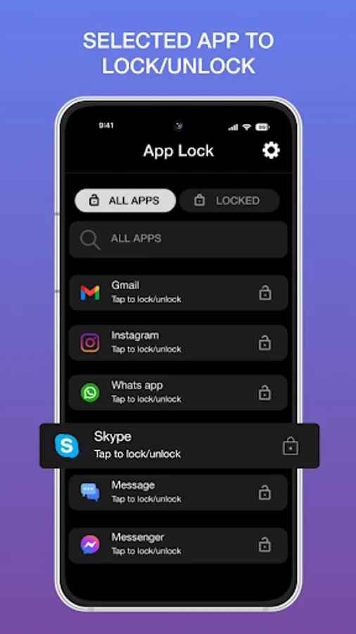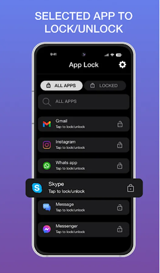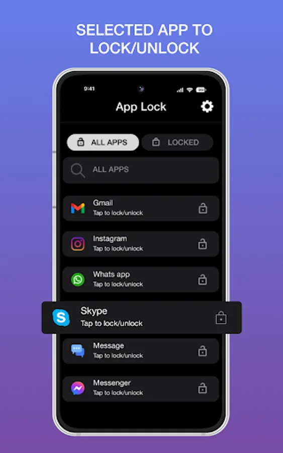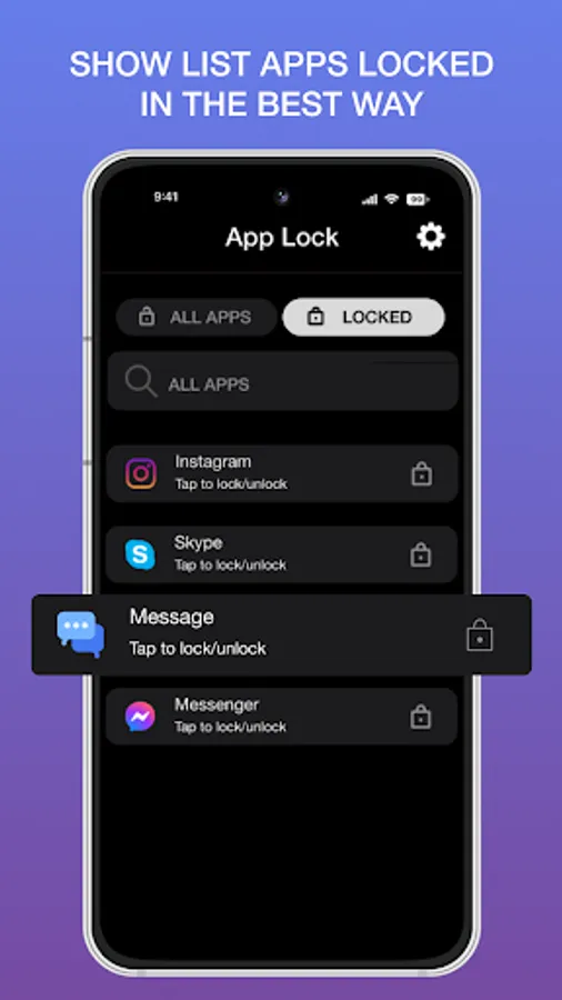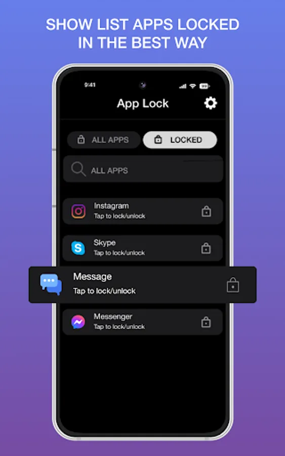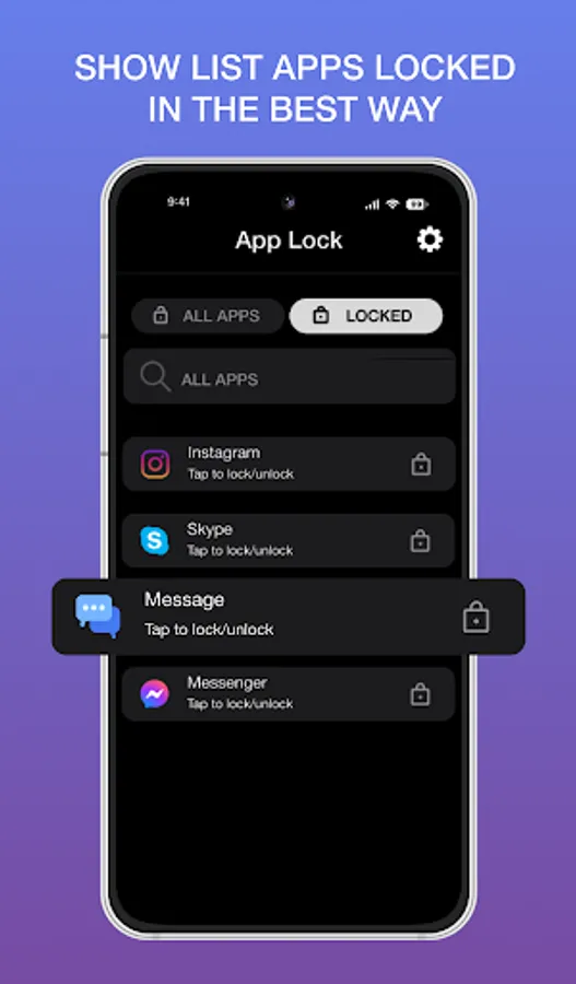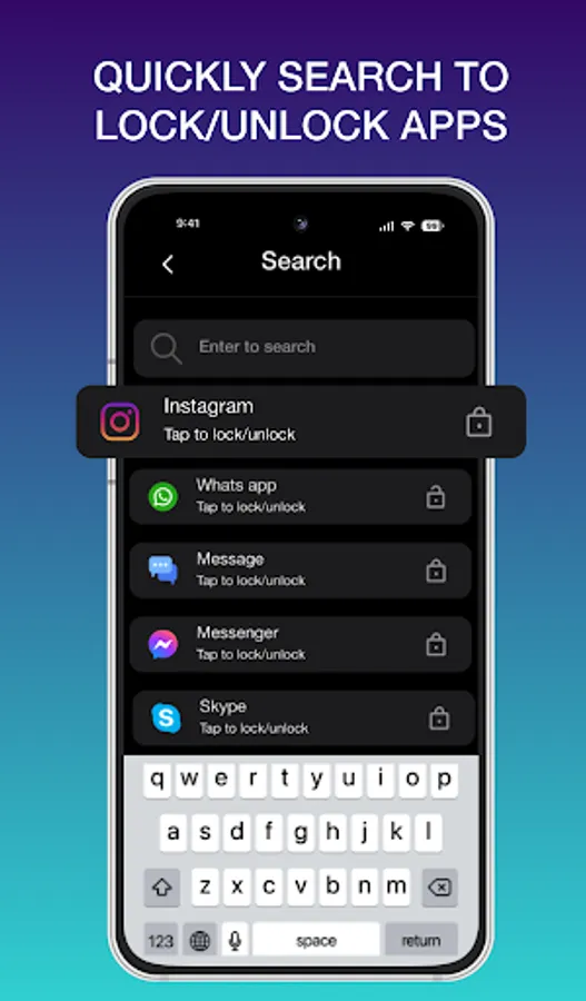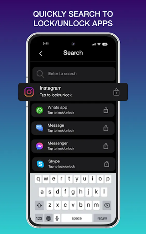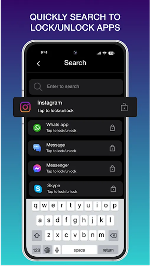 Quickly find out app to lock/unlock with Search bar view.