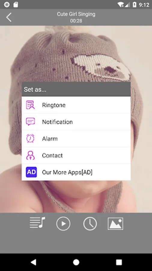 4, Free to set baby sounds ringtones as default ringtones, alarm clock ringtones, contacts ringtones, notification tones;