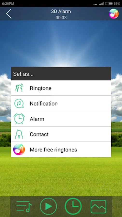 If you like one of the MP3 music you can set it as your default phone ringtones, alarm clock or SMS notification tone.