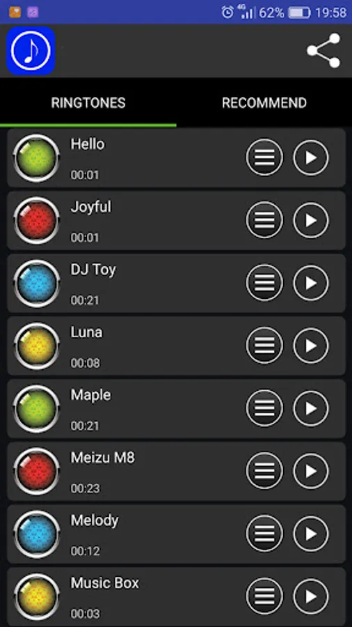 Open this free ringtones application, you can press the " play " button to listen to the MP3 music.