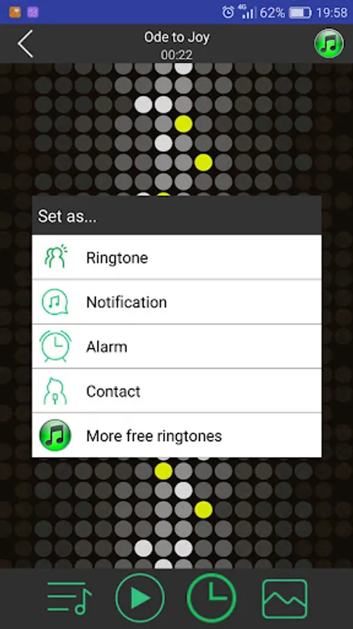 If you like one of the MP3 music you can set it as your default phone ringtones, alarm clock or SMS notification tones.