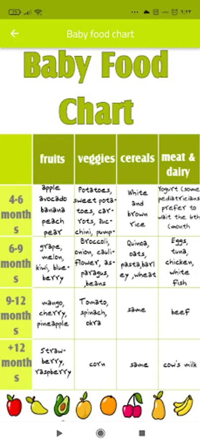 In addition to a timetable that shows you when to enter each food item on your baby's menu