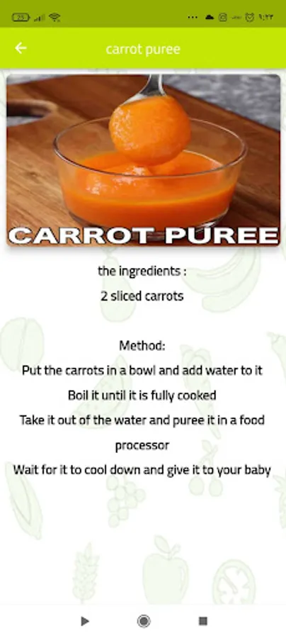 We divided the stages of feeding the baby food 3 stages and added information about each stage and the steps for its implementation, in addition to baby food recipes .