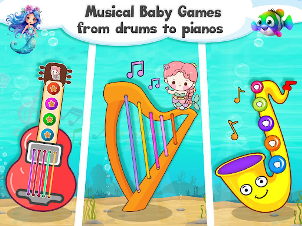 Dive into an enchanting underwater world with our Mermaid BabyPhone Adventures– a delightful and imaginative game specially designed for girls and 1+ Year Old kids!