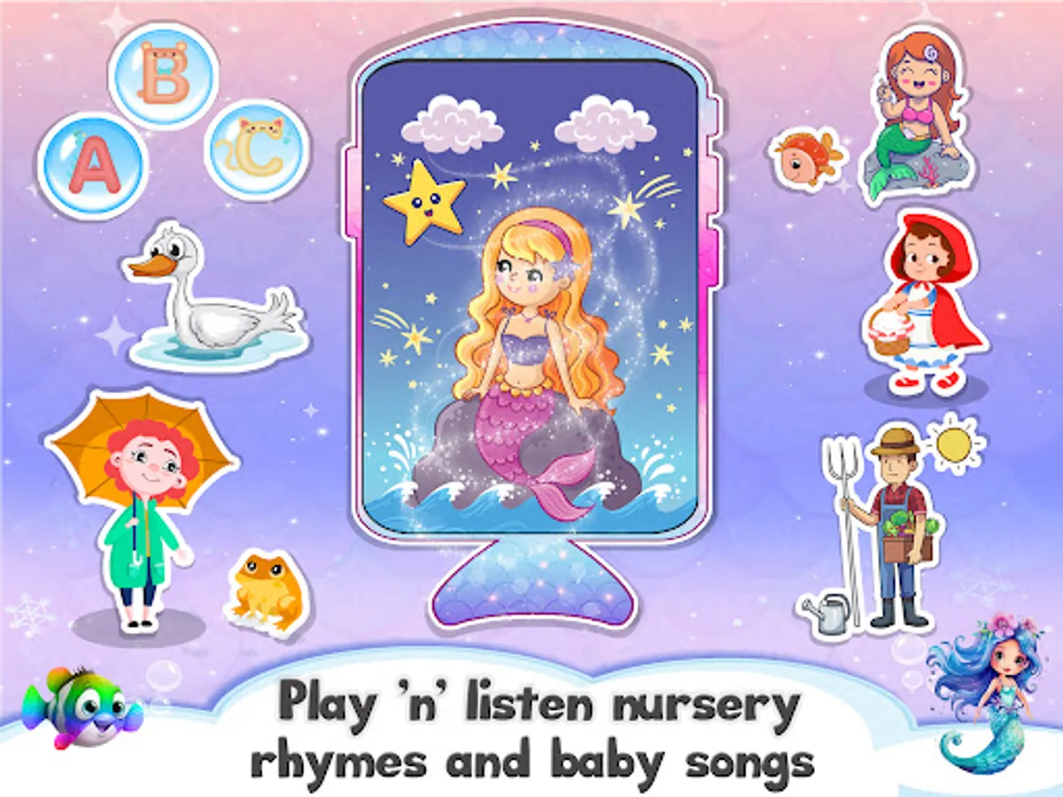 Search for mermaid's hidden objects hidden in the vibrant underwater scenes. Let the giggles flow as kids pop bubbles to reveal delightful surprises and earn rewards. Learn about marine life, colors, shapes, and various musical instruments, all while having hours of fun.