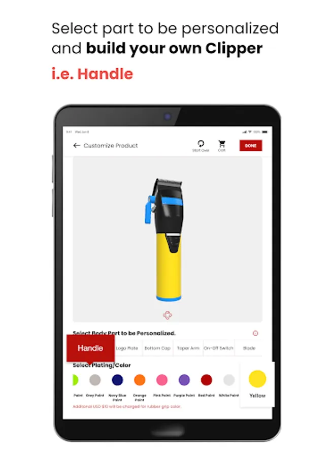 BaBylissPRO CustomFX® puts unlimited possibilities at your fingertips. Choose components – pops of color, flashy metals, your blade of choice, whatever combination is uniquely you. Go ahead, craft the high-performance clipper that showcases your creativity, personality, and style.