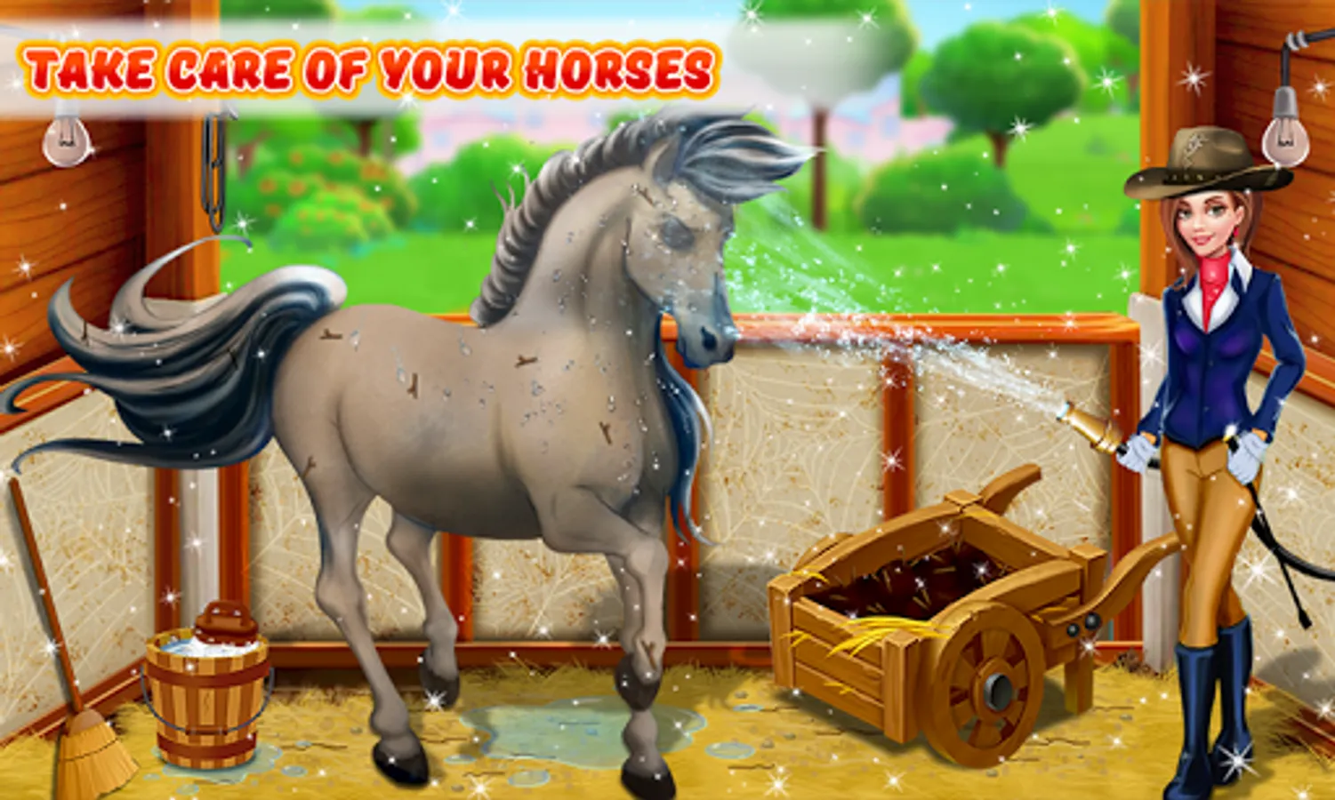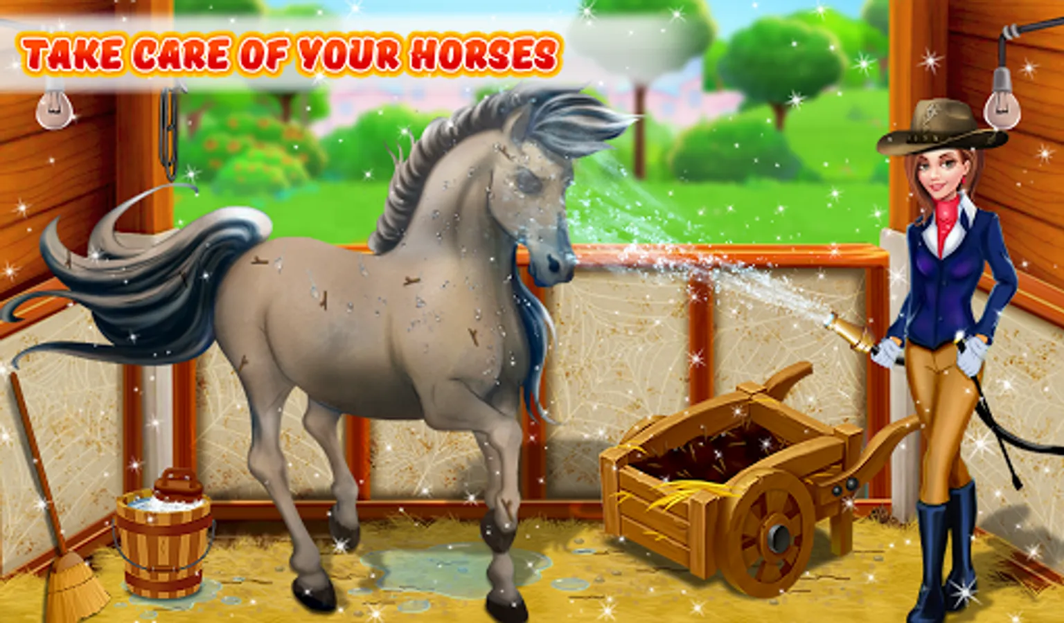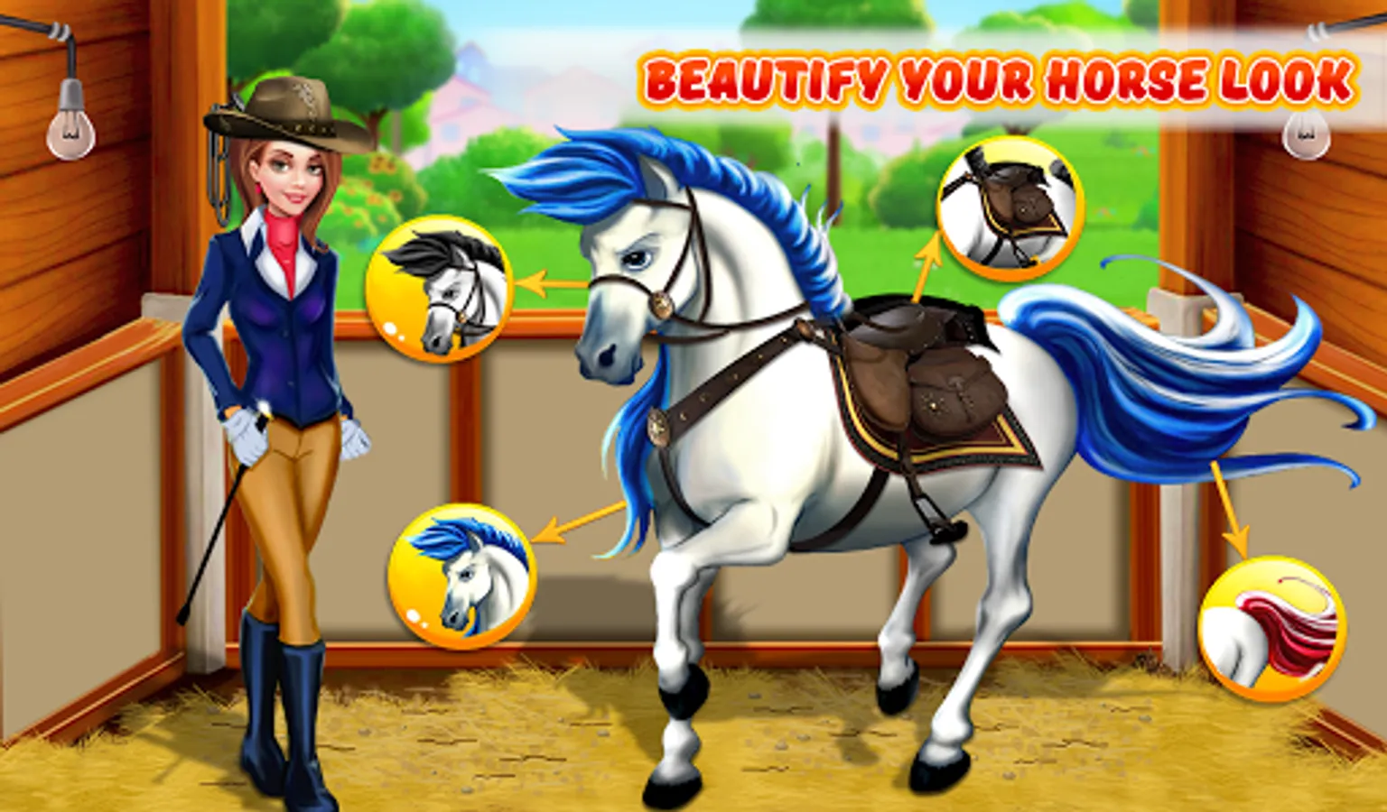 In this amazing fun and adventure Magic Unicorn derby Horse Caring and racing Game: Dressup Simulator for horse game for the kids and you have to use the stable tools to achieve the cleaning part and make the horse's home clean and shiny. When you've completed the cleaning part you will be able to move to the one where you will be taking care. See and watch the skin of your horse if there are any foreign objects then clean up all of them and make his medical treatments and let it heal. His health needs a recondition and you will be the one that cleans them and replace them. Give him a warm bath in the shower and apply shampoo, rub it until the foam covers the whole body and then clean him. When you have complete the bath and washing of horses than take the horse to the dressing room where you will be adding cute accessories and interesting clothing items for making your horses look more beautiful. Your horse muse look best horse in horse racing games.