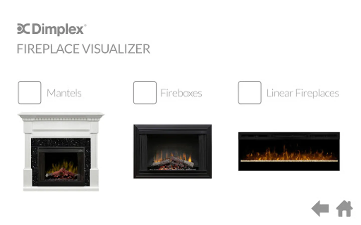 The Fireplace Installation Visualizer provides a preview of 1:1 scale mantels, electric fireboxes and linear electric fireplaces. Position the AR target marker on any wall and view working product using your smartphone or tablet. The Fireplace Installation Visualizer is a quick and easy way to evaluate a range of Dimplex built-in fireplace options prior to construction.