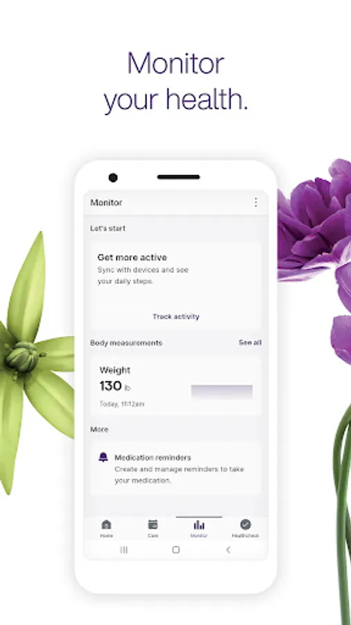 Monitor: Connect your existing health apps and set medication reminders to manage your health in one place.