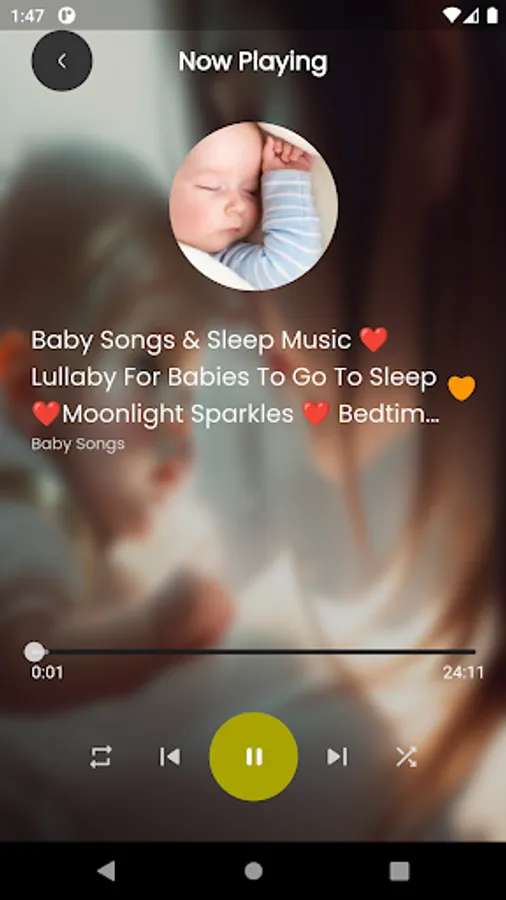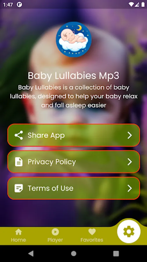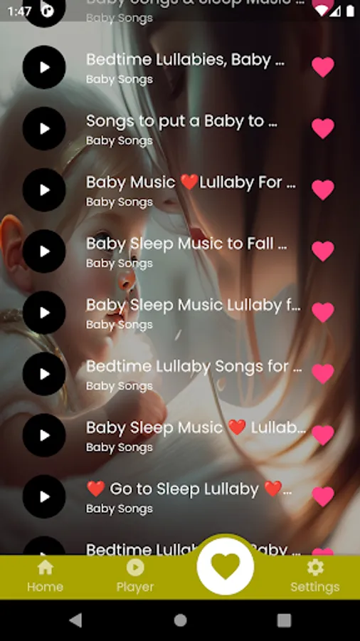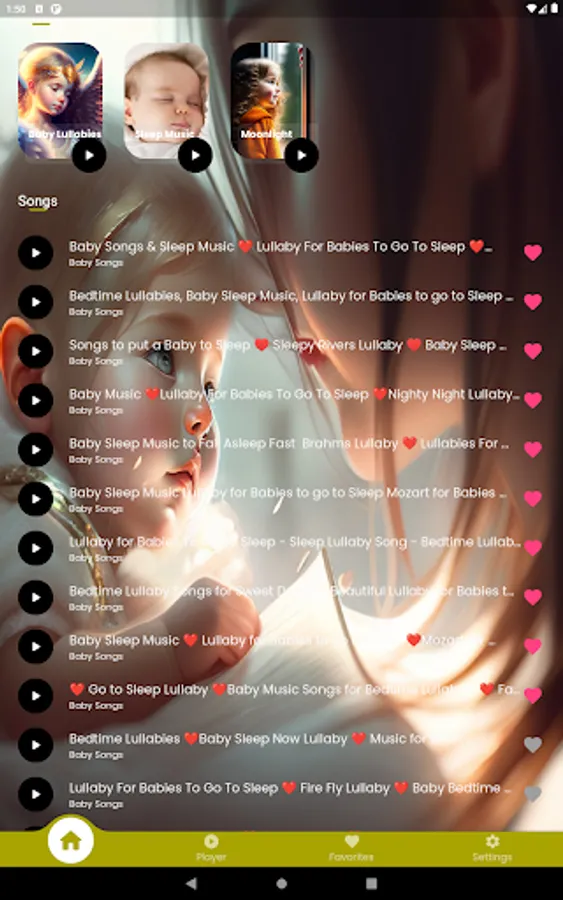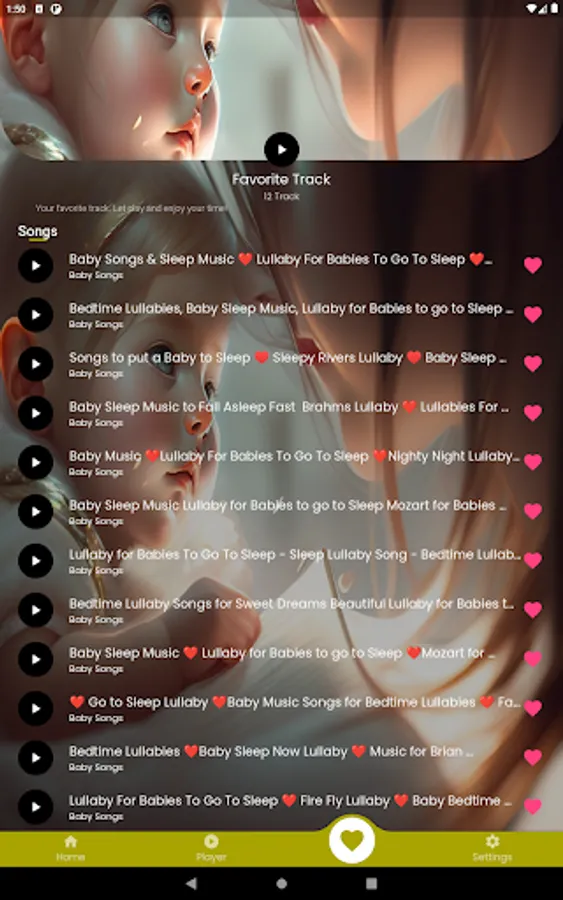 Designed to help your baby relax and fall asleep easier,Mellow, gentle and deep melodies are combined with melodious lyrics, forming a peaceful and enchanting musical space. You can hear familiar lullabies like "Twinkle, Twinkle Little Star," "Rock-a-bye Baby," "Hush, Little Baby," and more. With Baby Lullabies, you will be able to create a quiet, affectionate and safe space for your baby, helping him to fall asleep more easily and have a better night's sleep.