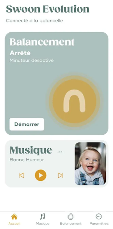 Control all the functions of your swing from your smartphone, thanks to this dedicated Babymoov app!