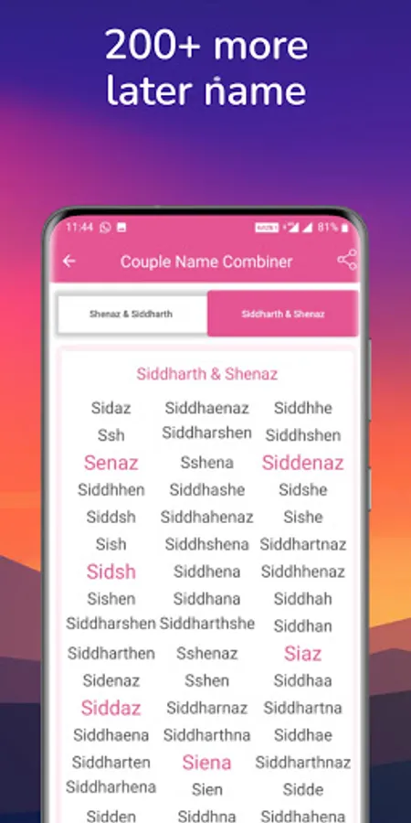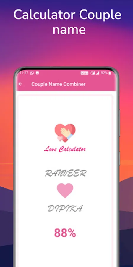 Using Couple Name Combiner App, you can Generate/Combine/Mix: