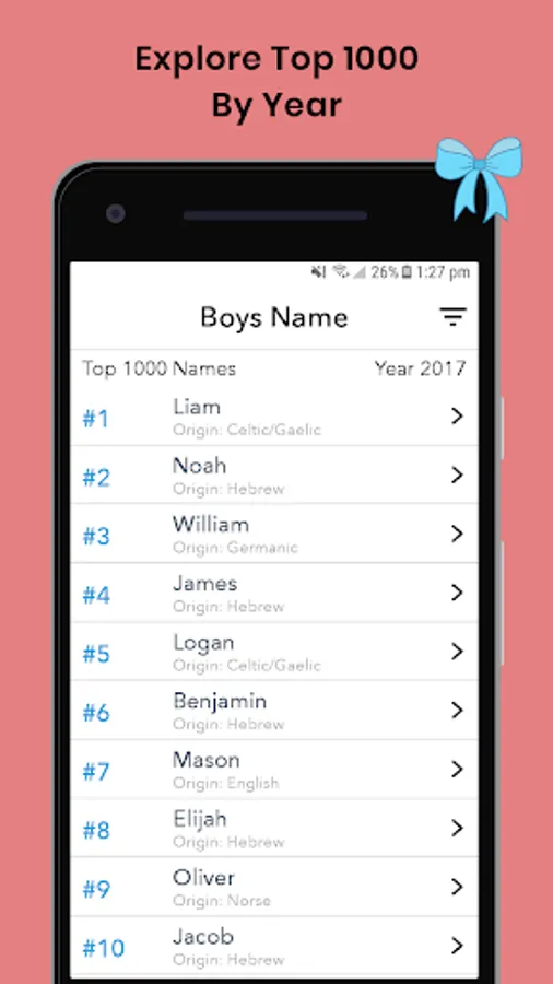 Enjoy choosing meaningful names for your kid, just as you would enjoy him / her smile. Get this most popular of free apps today and give your angel unique, unusual or cool names and unisex names.