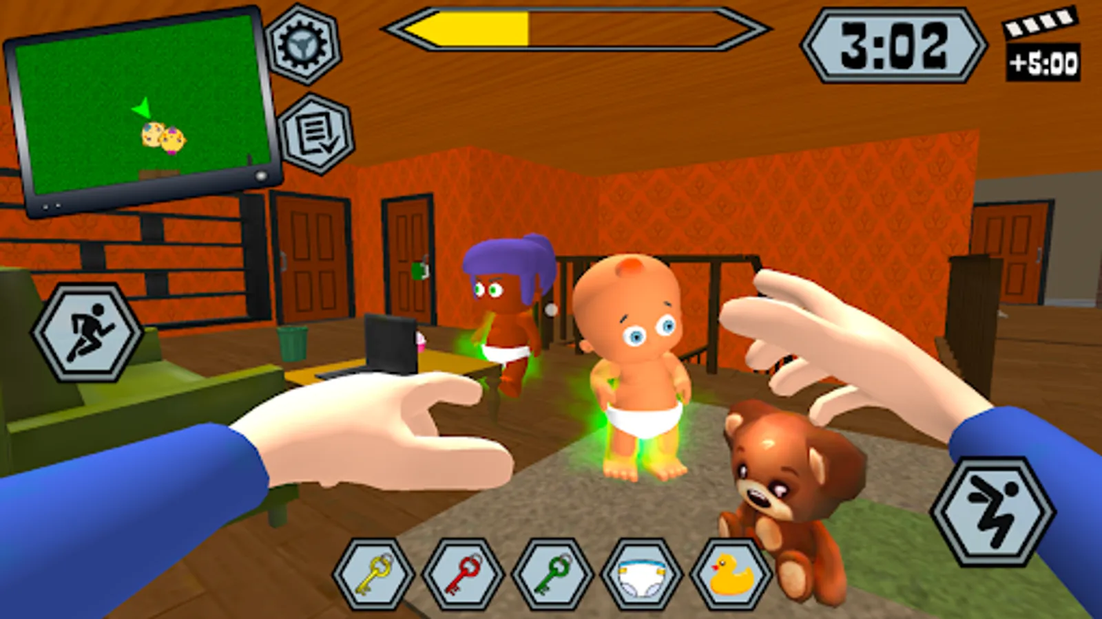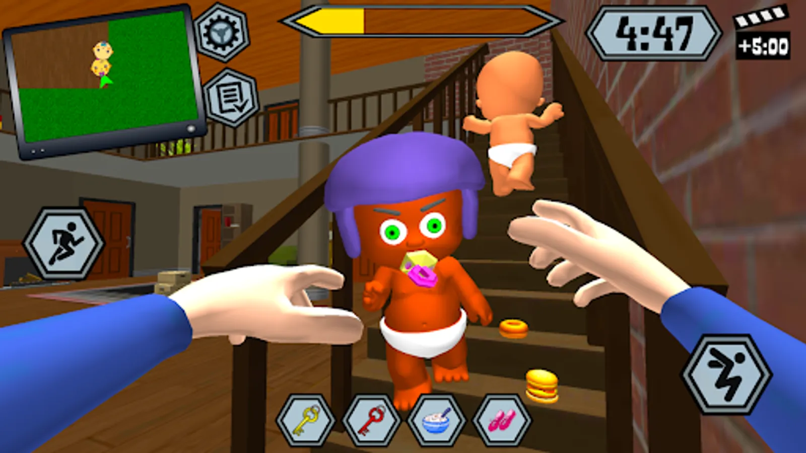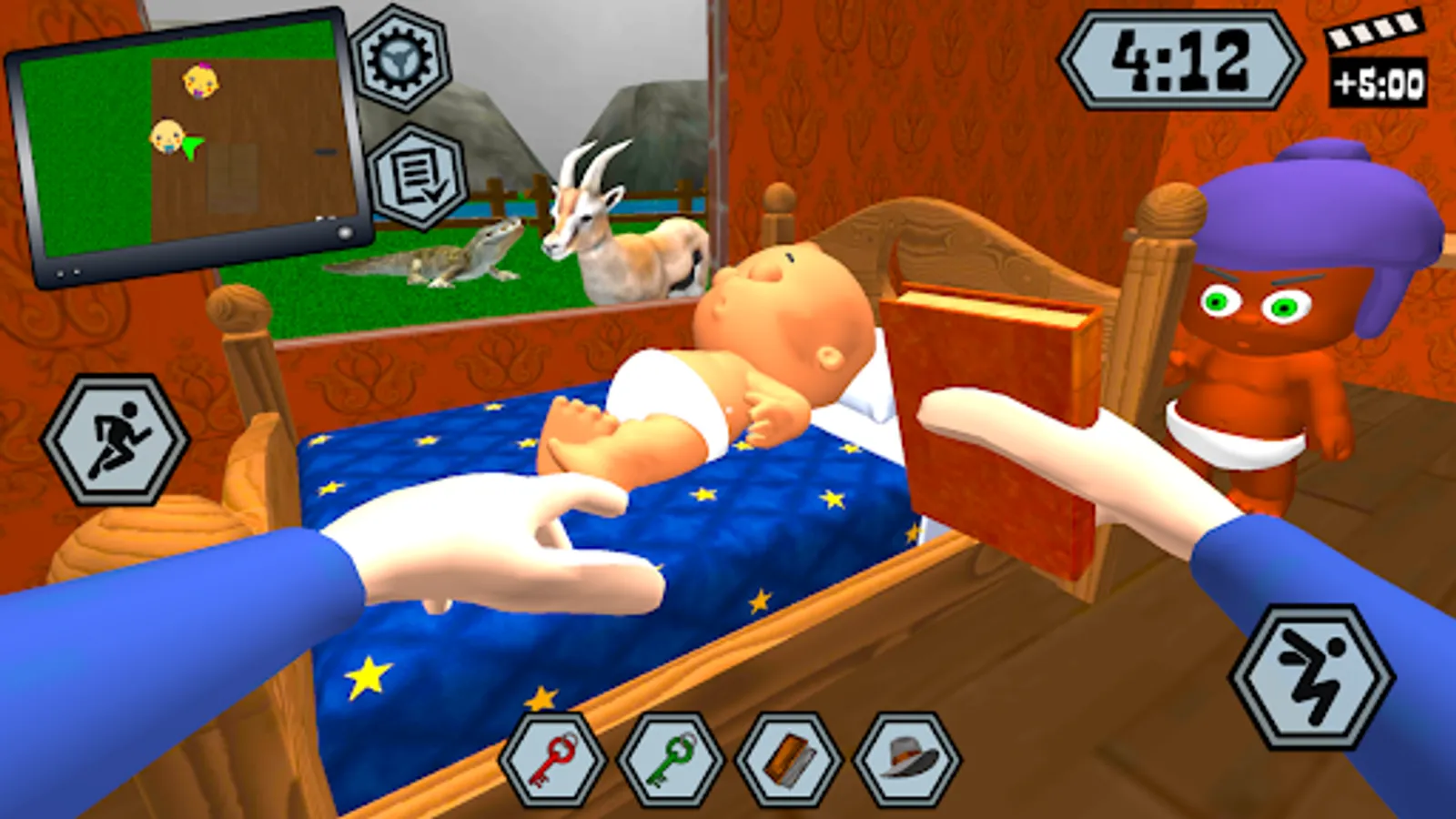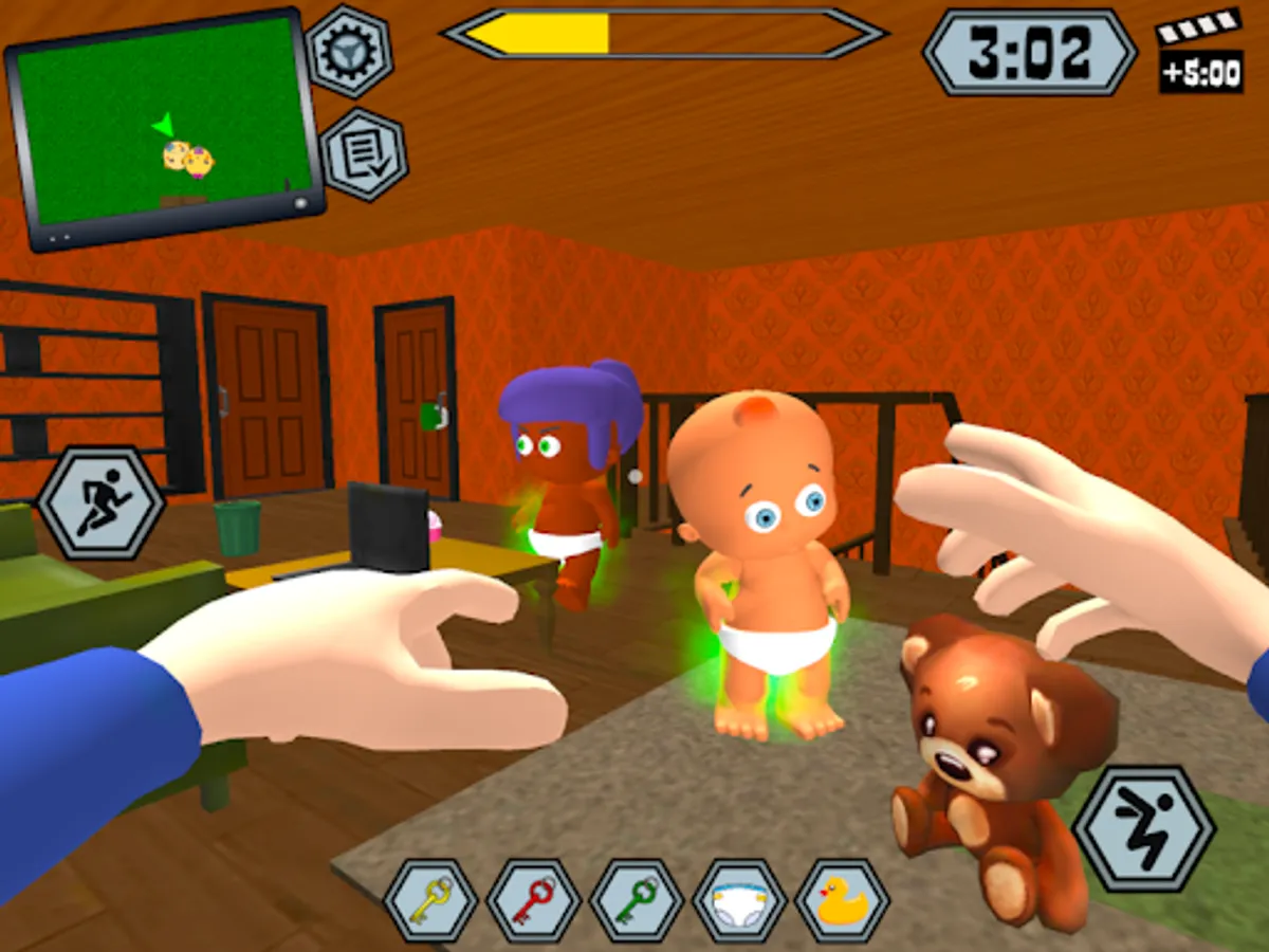 Your neighbor is about to go on vacation. He asked you to look after his children. Complete various missions for a certain time and make sure that the baby remains happy.