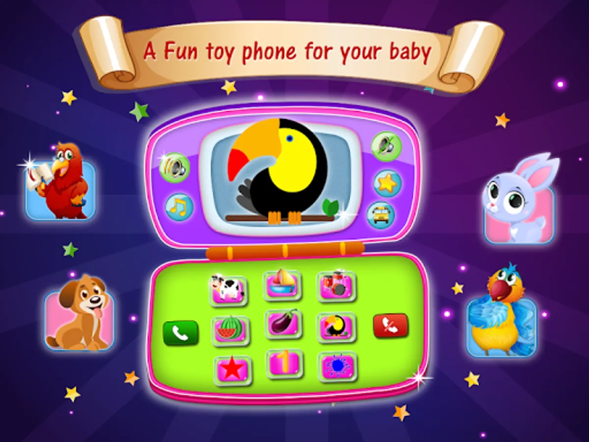 The Baby phone toy is a fun, free educational learning game for kids to learn numbers, animal, nursery rhymes, Fruits, birds, colors, shapes, musical instruments, and toys. this game will convert the smartphone into a Baby phone toy for children. A phone for babies inside the real phone,