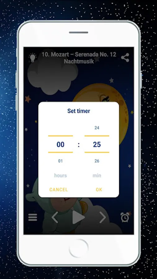 – Timer function (select a lullaby, set the timer, after a present time lullaby turn off itself)