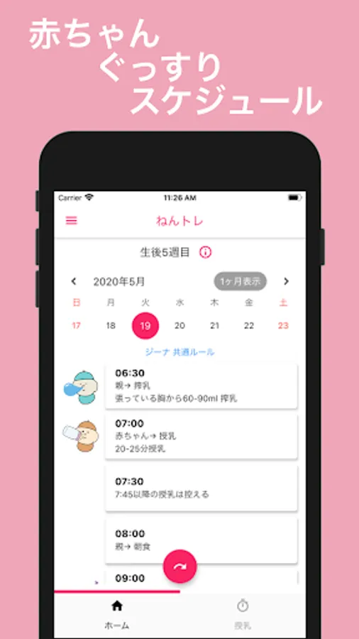 欧米で人気の「ジーナ式」のねんねトレーニングスケジュールをいつでも確認できるアプリです。月齢に合わせた授乳や寝かしつけの最適なタイミングがわかるので、アプリに従うだけで赤ちゃんが長く寝やすくなります。