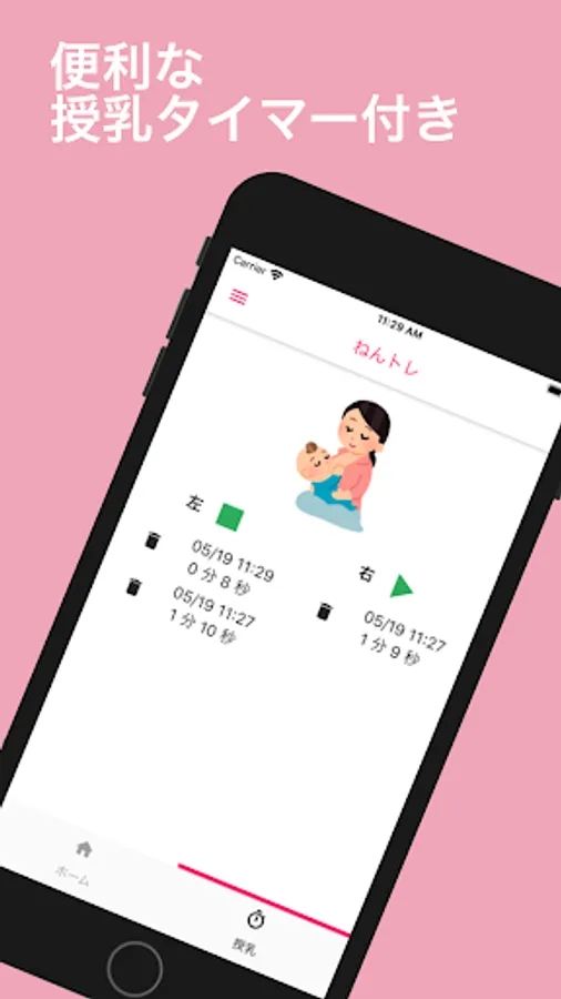 いつ授乳したかを忘れないために簡単に授乳記録を残せます。赤ちゃんが十分な母乳を飲めているか確認するためにも記録を残しましょう。
