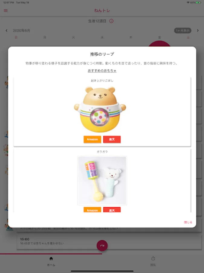 赤ちゃんの月齢に合わせた最適なおもちゃを確認できます。