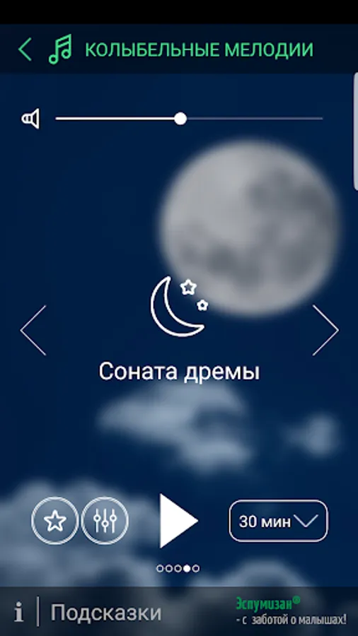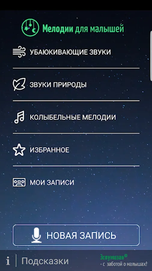 We gathered in the application "Melodies for Kids" lulling sounds, natural sounds of nature and lullabies to help your crumbs easily fall asleep at any time of the day or night, at home or when you're with the baby on the way, and you, dear parents, nakonets could then relax and unwind.