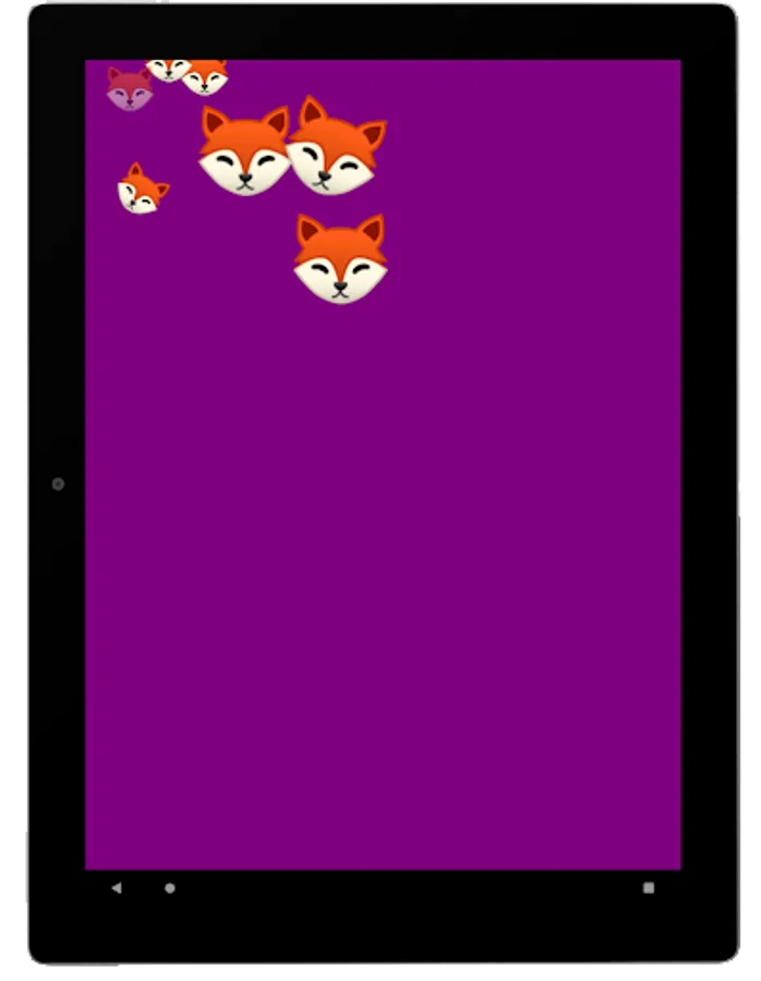 App shows a random emoji that moves around the screen. User can touch the emoji and it quadruples. Touching the background changes the emoji. Some emojis play a sound.